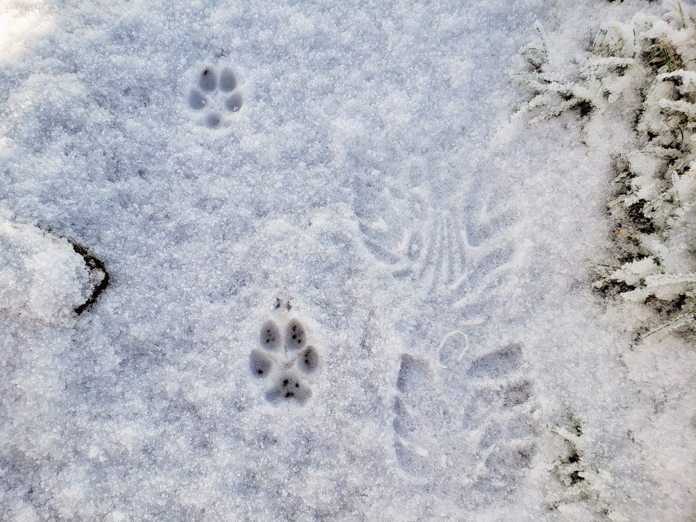 Yakima was enshrouded in fog, but Snow Mt. was sunny and clear - yes! The trail was frozen and slippery on the way up - good boots and poles (and careful steps) made me more confident. The upper half had 1/4-inch of snow on the trail, which actually made traction easier. I saw lots of animal prints - for awhile my imagination convinced me I was being tracked by a saber-toothed tiger, but then Google helped me figure out it was just a coyote (I think).