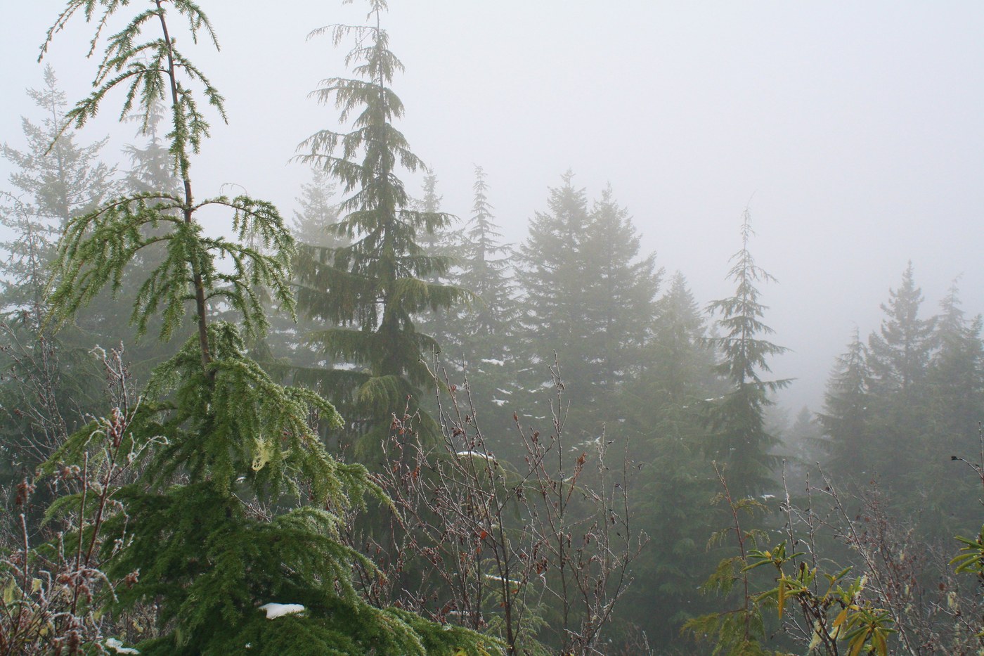 There were more than a few happy hikers on the trail this Christmas Day; apparently this is quite a popular spot even on a holiday. There are two blowdowns across the trail -- no problem to cross, although small children may need help. It was snowing/sleeting at the summit (no views today) and there was a light layer of crunchy snow. (A highly localized white Christmas!) All the cleared areas at the summit had a little snow on the ground, but we never needed to break out the microspikes. Someday we'll return to take in the views, which I hear are amazing on a clear day.