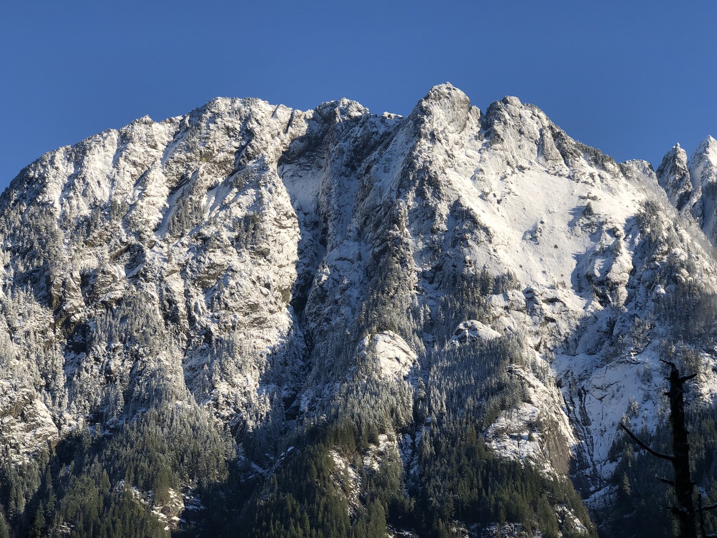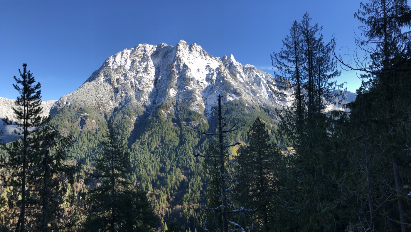 There were probably 40 cars at the Mailbox Peak trailhead when I drove by but no one on the Stegosauras climb. To get here, continue on the Middle Fork road almost till it ends. At about 11.8 miles is the large parking area for the Middle Fork trail. Park here, cross the impressive steel bridge, and go right onto the Pratt River Trail. After about .25 miles look for a trail going up to the left. Today it was muddy at the bottom but after a few hundred meters it was fine. I didn’t hit any snow until about 2000 feet, just before the summit. And it was just a light dusting. I continued on a boot path all the way to the furthest east point of the Butte, where the sun was warm. It took about 35-40 minutes to reach this spot.
