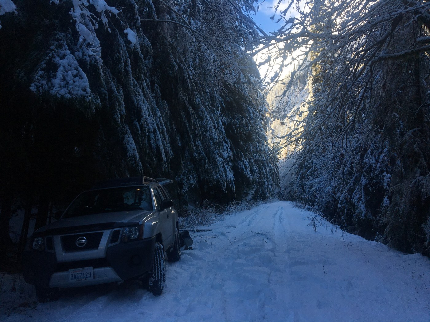 Attempted to get to the trailhead in 4WD vehicle (Xterra) but ran into snow a few miles from the trailhead. Walked up the road for a few miles but did not reach trailhead before we decided to head back as the snow was gettin deeper and the dog was having a tough time pressing on. Water over roadway at one point. We made it to roughly the 6 mile mark on unpaved road. It was packed for about 4-5miles and we were the only people to go further but eventually the snow got too deep for my car. Look forward to getting back here after the melt.