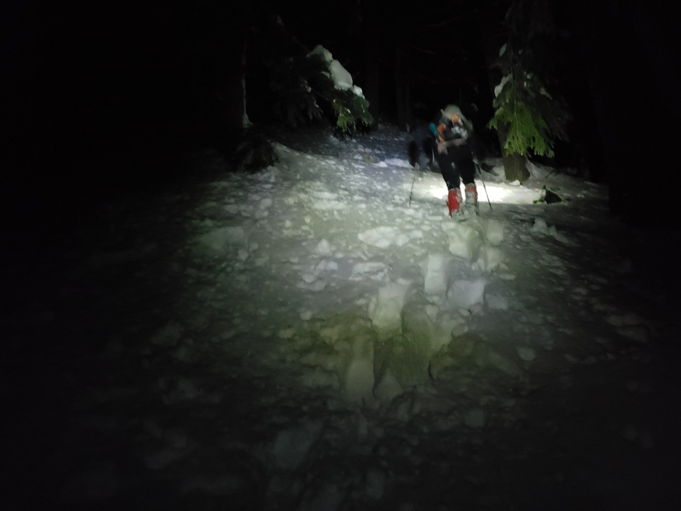 "Trail"- once you begin the winter route. Assuming you know where the ridge starts. It is fairly simple. Stay on top of the ridge, and just walk all the way up it, first mile you'll enjoy some "veggies glissading" seriously the ground was falling apart under us. The snow begins roughly around 3600 ft. Easy enough to walk up in your boots, about 4,000ft it was time to put on snowshoes, the entire route from here can be snowshoed. We had axe and crampons but, did not need them. Starting around 5,000 ft the snow gets absolutely brutal. Waist deep post holing with snowshoes on, wet, heavy snow, destroying your legs. I've broke alot of trails for longer distances than this one, and this by far was more exhausting. Around 5600' we started seeing minor signs of avy danger, slopes were holding up so we pressed on to treeline, And stopped there. The upper slopes above treeline, have enough avy danger signs that we did not consider passing tree line. I do not recommend touching them soon. We made it to treeline at first light, french pressed coffee, had breakfeast watched the alpen glow show, and descended fast before anything warmed up. We descended down to about 4kft in just over 30 minutes. Route down was simple enough.