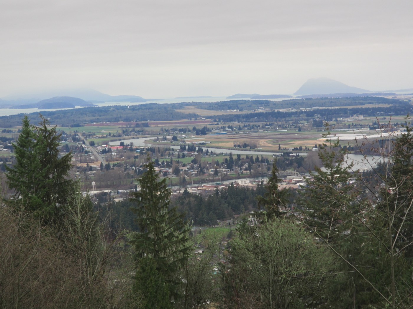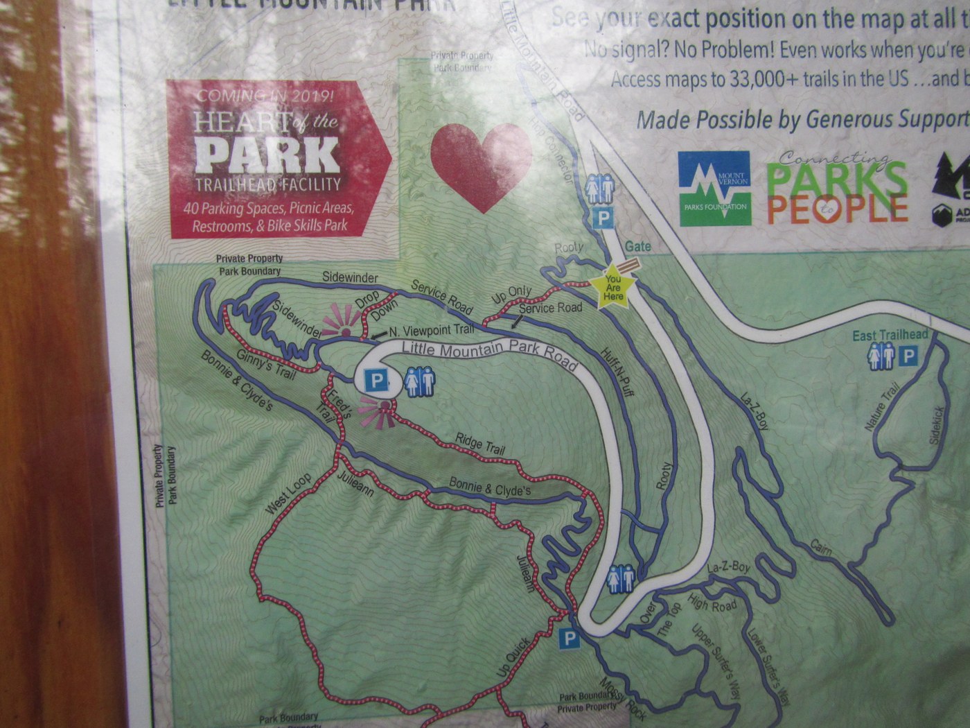 If you're looking for a close in dose of woods, this is a good choice. There are lots of trails to choose from and some nice views in good weather. We parked at the North parking lot by the gate. There is parking for3 cars and a loo, plus a couple more parking spots on the road. We took the Rooty trail, then the Up only, then checked out the North viewpoint, no Baker today. From there we took the Sidewinder to the top viewpoint and the tower you see from the freeway. Down the Ridge trail to the road, then down the road to Upper and Lower Surfer trails and out on the Lazy Boy. Most of these trails are in woods, there are some nice rotten old growth stumps that give an indication of the size of the trees that were once here. We ate lunch on a nice log, then continued back to the parking lot. To be honest, I was cold, it was windy and I really didn't get a lot of enjoyment on trail today, this was mostly a fitness hike. Luckily we missed the rain. I'm guessing we did about 5 miles altogether. Take a picture of the map at the TH. I"m posting a picture of the map so you can find the other trailheads, there are 4 on the north end(pictured on my map pic) on one on the southern end by the Darvil trail (not on my map pic).