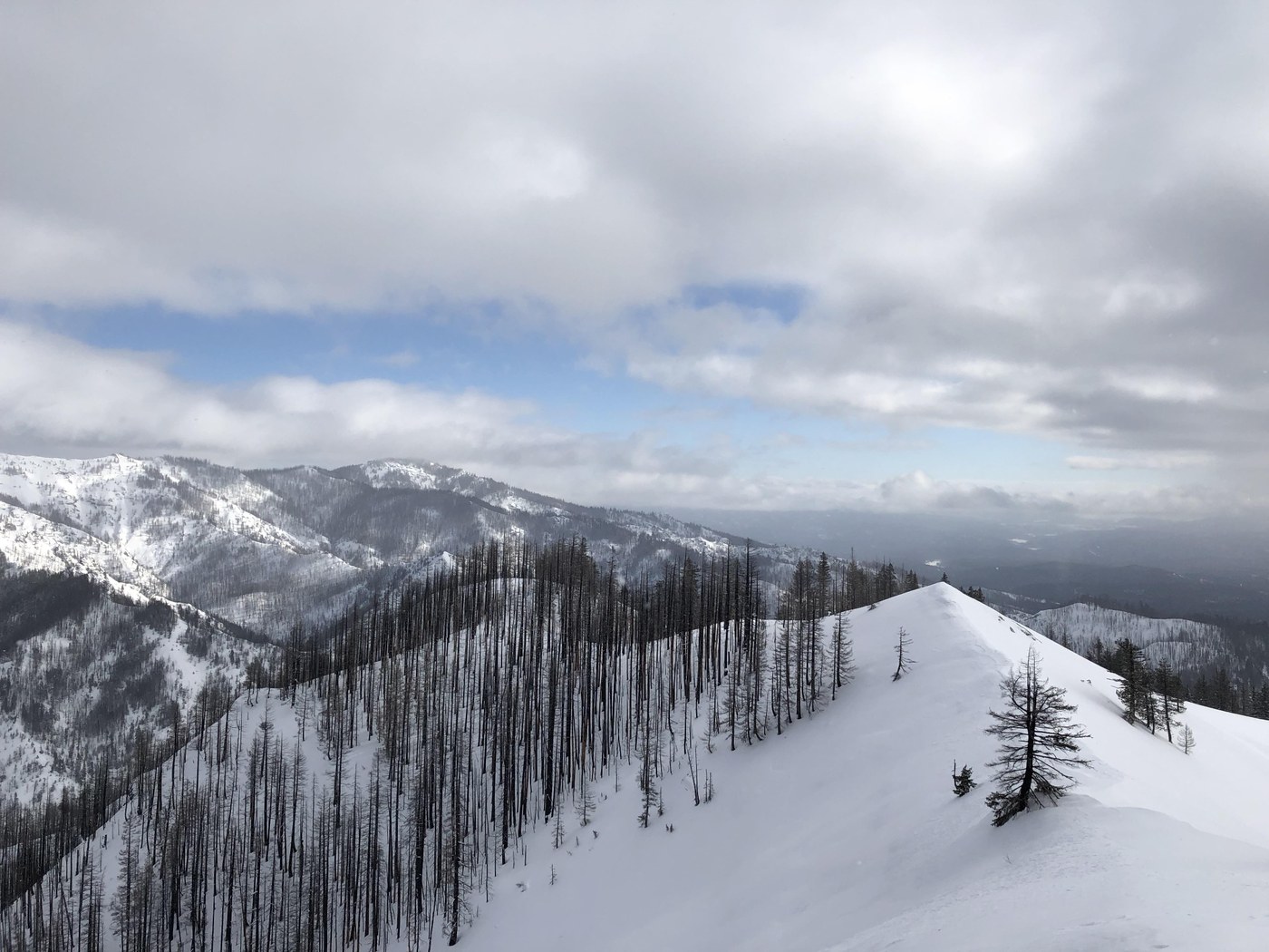 Trail navigation was straightforward, you just follow the ridge and avoid the cornices along the right side. We exited the forest and climbed the knob to the summit. Enjoyed beautiful 360 degree views of Lake Cle Elum and the Teanaways! As we ate lunch, a skier and her dog arrived. She was the only person we saw all day.
