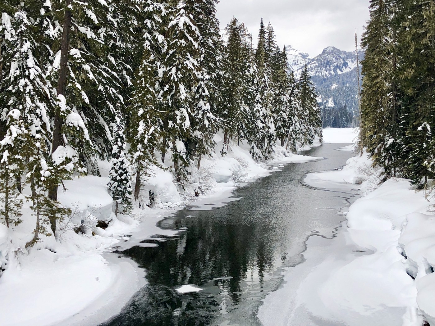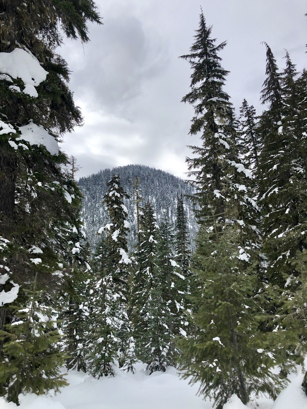 Don’t be a doe-doe bird like us and stop short of the correct parking area for this Snowshoe. Go all the way to the end of Salmon La Sac Rd. It will be super obvious, as the plowing service ends abruptly. (Be sure to only park where there are posted signs so you don’t get a ticket. Rangers were in the immediate area.)