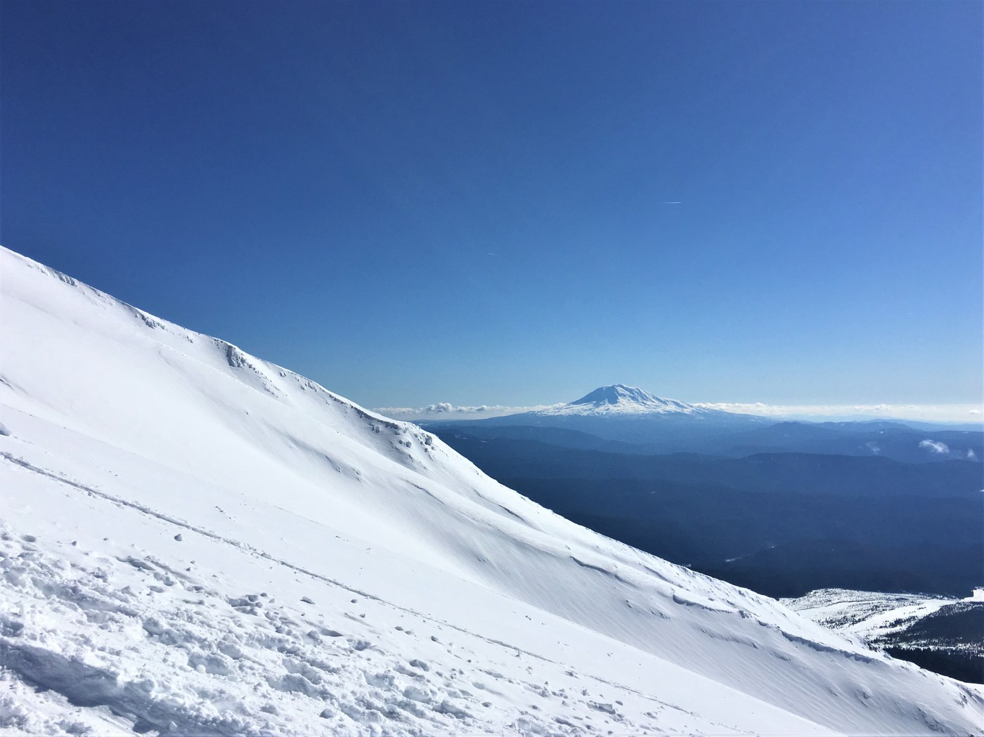After booting it back to the crowds, the sun had sufficiently warmed and softened the snow, so we put on our glissade gear (rain pants and/or trash bags) and got ready to go down. There was a lot of fairly dangerous lack of knowledge/technique on display. We saw lots of people glissading in crampons (and even one person trying to glissade in snowshoes!!!). We saw people wildly flinging their ice axes with clearly no idea how to use them or some people with no device for arresting/slowing at all. Many climbers elected to boot up in glissade chutes, adding giant postholes to them. When people glissading didn't know how to slow themselves, they would just kick their feet into the glissade chute to stop, creating a hillock of snow that effectively ruined the chute. I would definitely advise people to learn and practice proper ice axe glissade/self-arrest technique before they get to the top of St. Helens (perhaps even take a class from one of the many local providers).