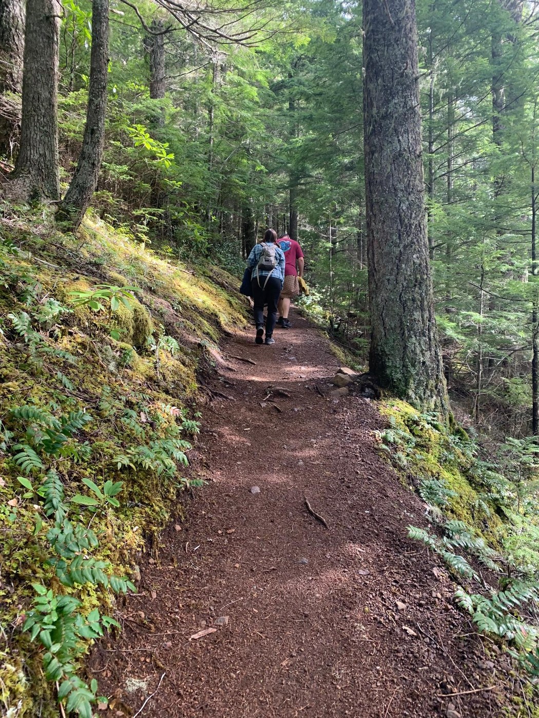 This is definitely an up up up hike but it’s short! Good training hike. No stairs and a fairly root free path. Saw 2 orchids, some yellow violets, and trillium. Would have loved to see the rhododendrons blooming but not yet - so many around though I’m sure it would be beautiful. We missed a clear view at the top by about 15 minutes and then it got socked in; the first of our party arrived in time to see the mountains and took a photo for us :) . Caught a few glimpses of water and trees though. Friendly (aka somewhat pesky) warblers at the top will watch you eat a snack.