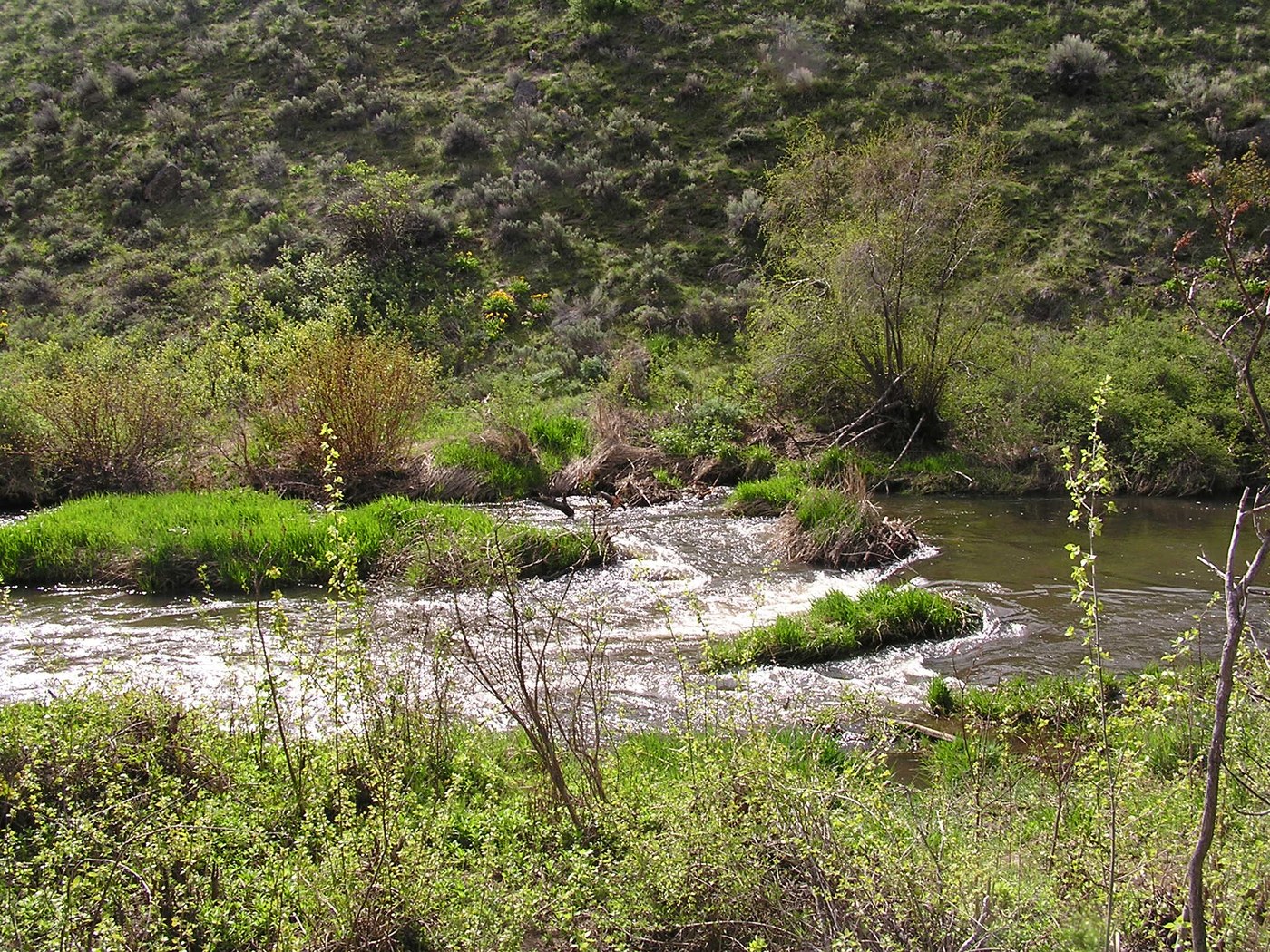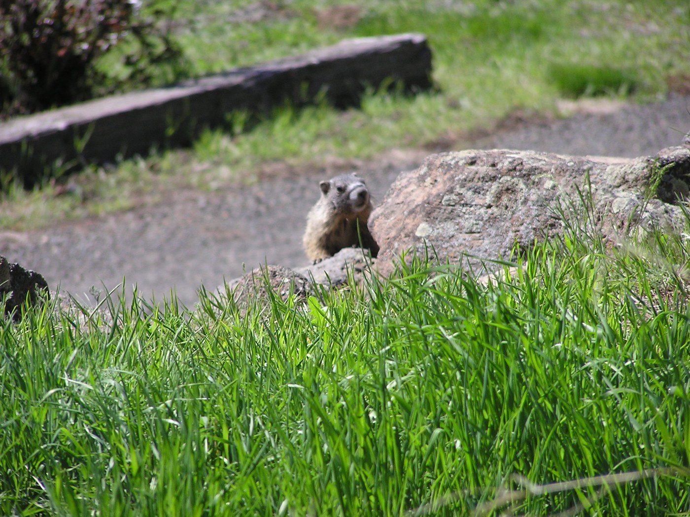 We walked from the Cowiche Canyon Road parking lot to the Weikel Road parking lot and back. The wildflowers are just starting. It was a beautiful morning to walk the trail. Caution: We saw a good size rattlesnake. We heard the rattle next to us and it was in the brush right next to the trail. We were able to see it very clearly, but I wasn't able to take a picture of it. (I was too scared to take my eyes off it!) We saw quite a few trees beginning to blossom and lots of lush green canyon walls. We were entertained by a couple of Marmots near the end of the hike.