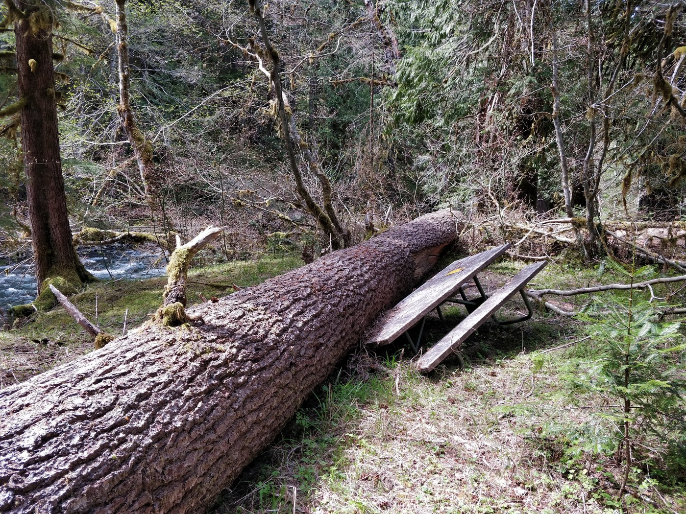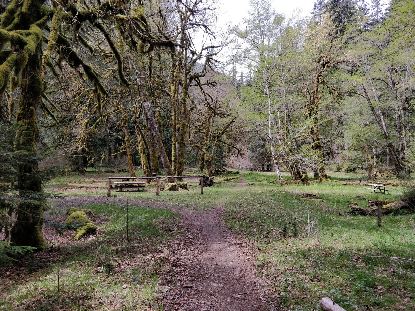 We hiked in for a long weekend at the Dosewallips abandoned car campground in Olympic NP. We observed fresh shattered glass at the parking area as a reminder to not leave valuables in your car.