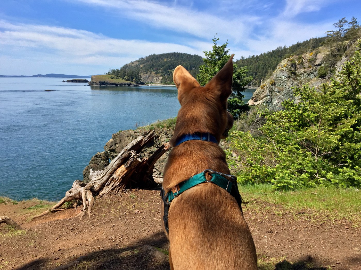 The day couldn't have been more beautiful for these hikes! We started off at the trail to Lottie Bay/Point. That was a mistake! What happened to this trail? I've done this one before, but it's a mess now. We stayed on the main trail until we reached a downed tree. We decided to climb over it with our dog, but got into a sketchy mess of a trail. We got out of that one, then went up a couple of the side trails. We gave up on those also.