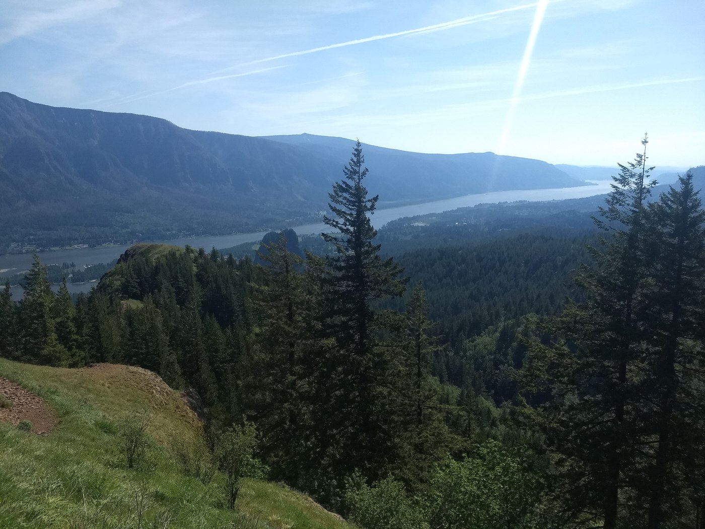 So I had the summit to myself for quite a while! I enjoyed views of Mount Adams and Hood, as well as Table Mountain and the Bonneville Dam. The river had an incredible current in it from the dam, visible from my 2400+-foot vantage point.