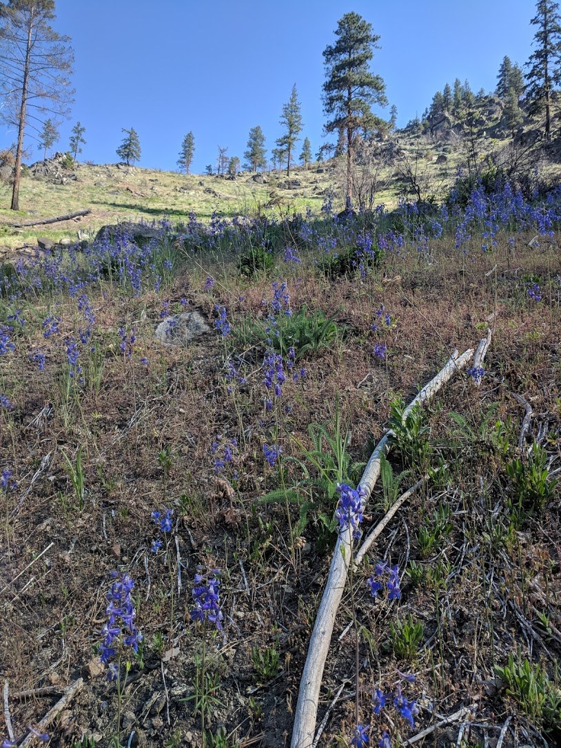 The trail was beautiful with lots of wildflowers blossoming on the hillsides. Even the areas that burned last year(which there are quite a few) added some contrast to the view.