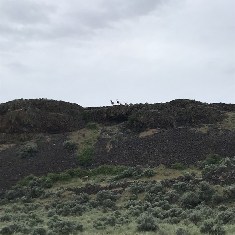 We reached the furthest point of the loop and it looks like others have gone beyond this point. I didn’t go further because I wasn’t sure it was an established trail and because I saw rain clouds gathering in the distance. We took the western side of the loop back. It is not as well-travelled, so sometimes it was difficult to see. The wildflowers are even more plentiful on this side. As we descended, we spotted five deer up on the ridge watching us make our way back down.