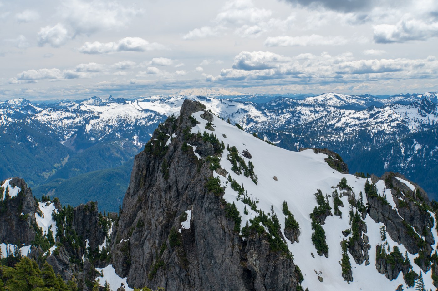 Looking behind us we could see waterfalls forming on the other mountains and when we finally got up to the ridge the views were even better. The ridge is enjoyable, not steep at all, does have some downed trees.