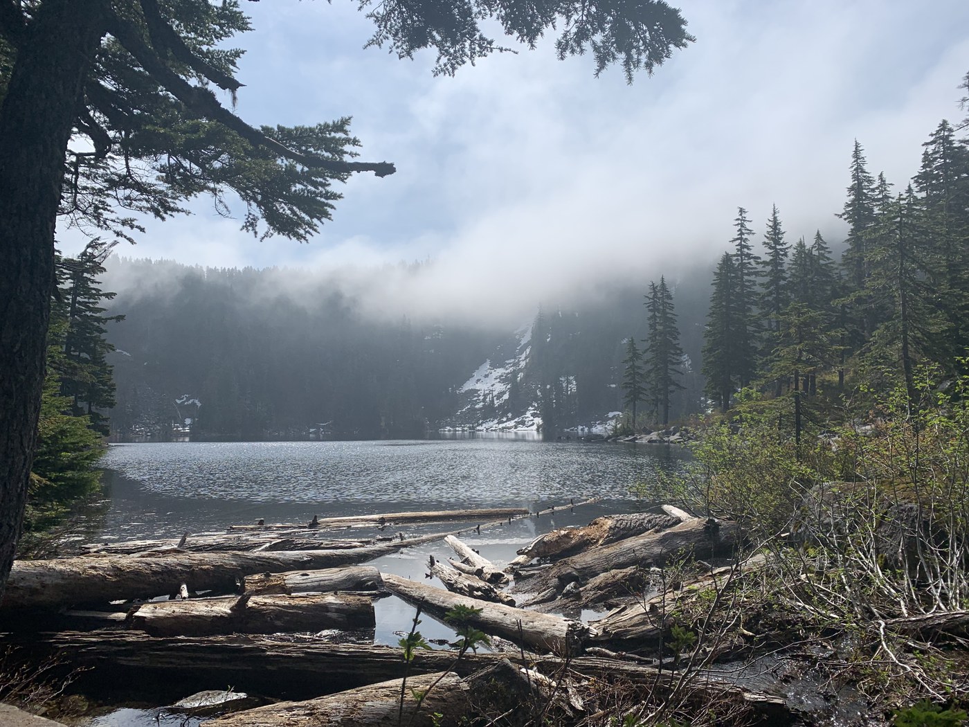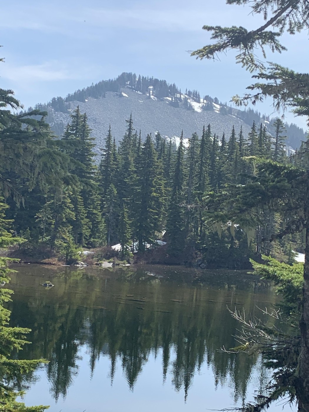 FOUND: a selfie stick. If you can correctly tell me the brand and color I’ll gladly give it back. I’m pretty sure I passed you early this morning as you were going down......any ways, I got a new back pack and boots and wanted to work on breaking them in before some multi day hikes I have planned. So I intended to start at ira sprig and eventually work my way towards talapus and back. The trail was snow free until about a quarter mile past the junction for rainbow lake. It’s still really deep in places and my dogs and I were post holing. So we made it to that tiny lake part way to rainbow, had lunch and turned back around. All in all about 9 miles. Only an hour forty-five to the lake. It was a great day for a hike!