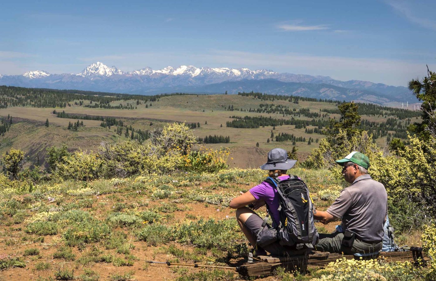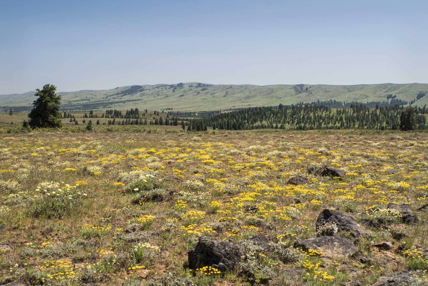 I led my 5th Sagebrush Ramble for the Cascadians up the Manastash Observatory Rd on this very warm, sunny day. We drove about 1/2 mile up the road and then started walking. When we got to the top of the ridge, instead of going east to the observatory, we went west along the ridge to Pt 3831 and found a nice lunch spot with views of Mt Daniel and the Stuart Range to the north and Mt Rainier and Nelson Ridge to the west. There were lots of wildflowers blooming the entire way, especially on the lithosols. We did not see any wildlife nor any other hikers.