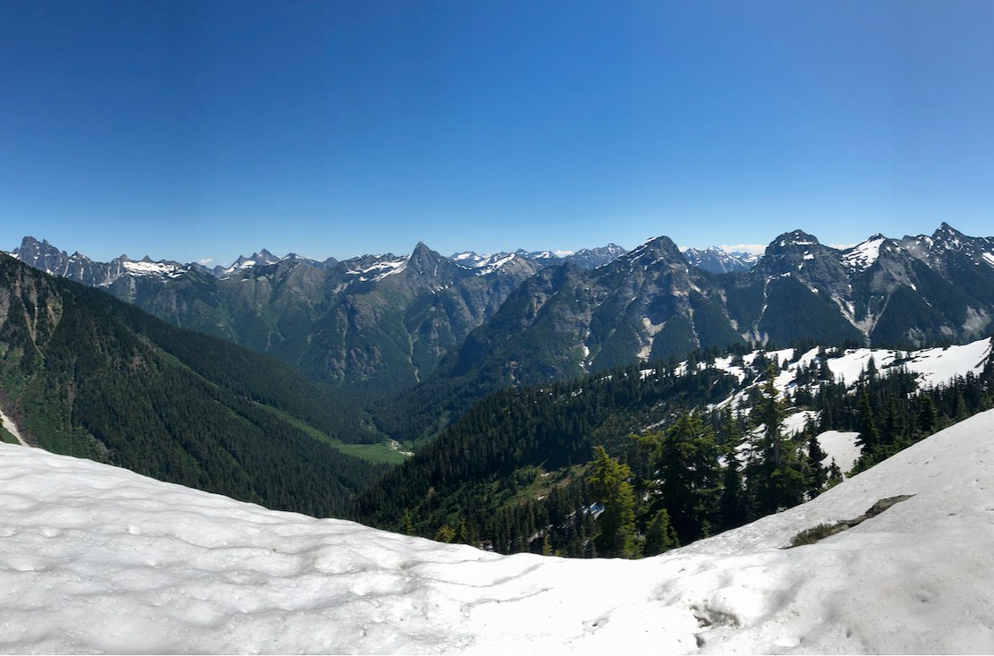 We had to turn back at 5900" - the trail is completely snow covered and is on a steep slope. Ice axe, crampons and confidence are required to reach the summit.