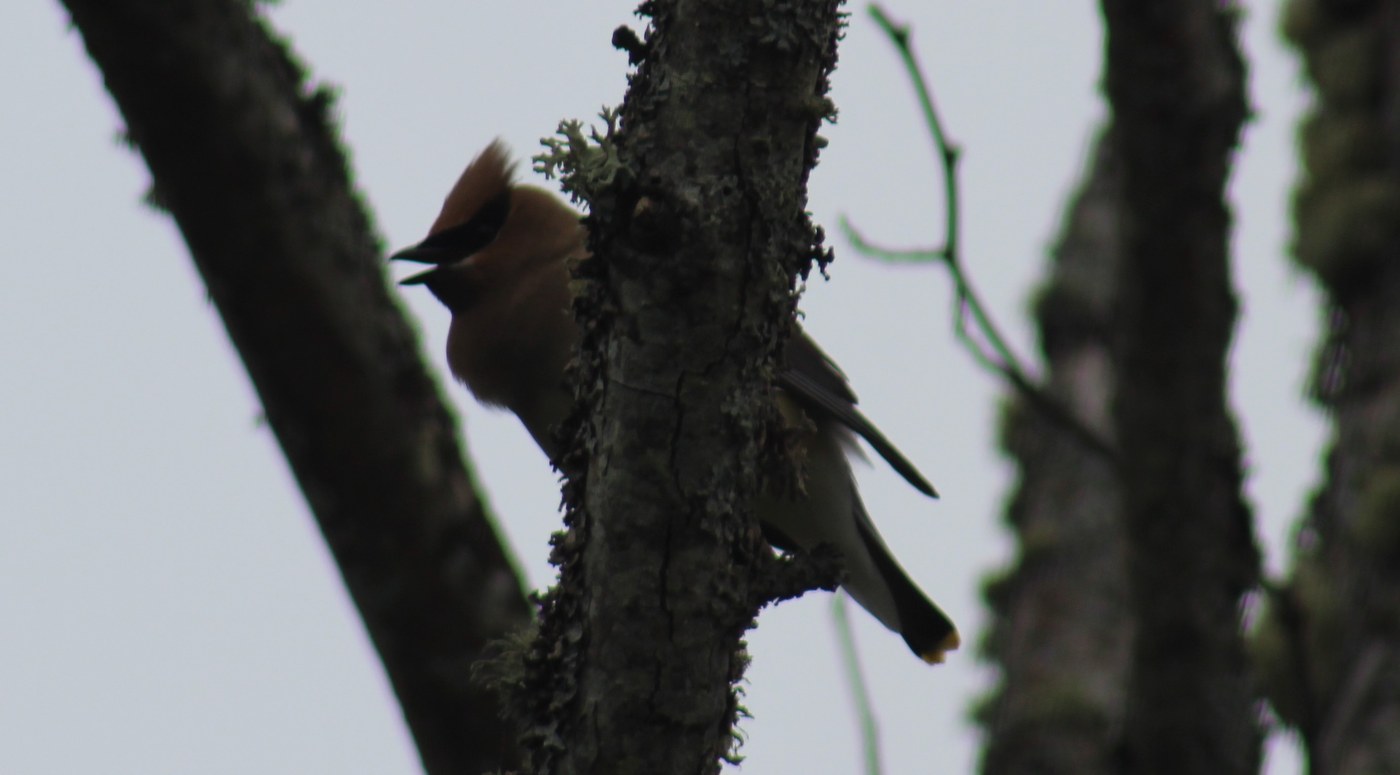 The tide was out and we could see a heron fishing. Closer to the lighthouse, an Osprey was hanging out on a tower (and then took a bath in the water). A cedar Waxwing was buzzing away in a tree.