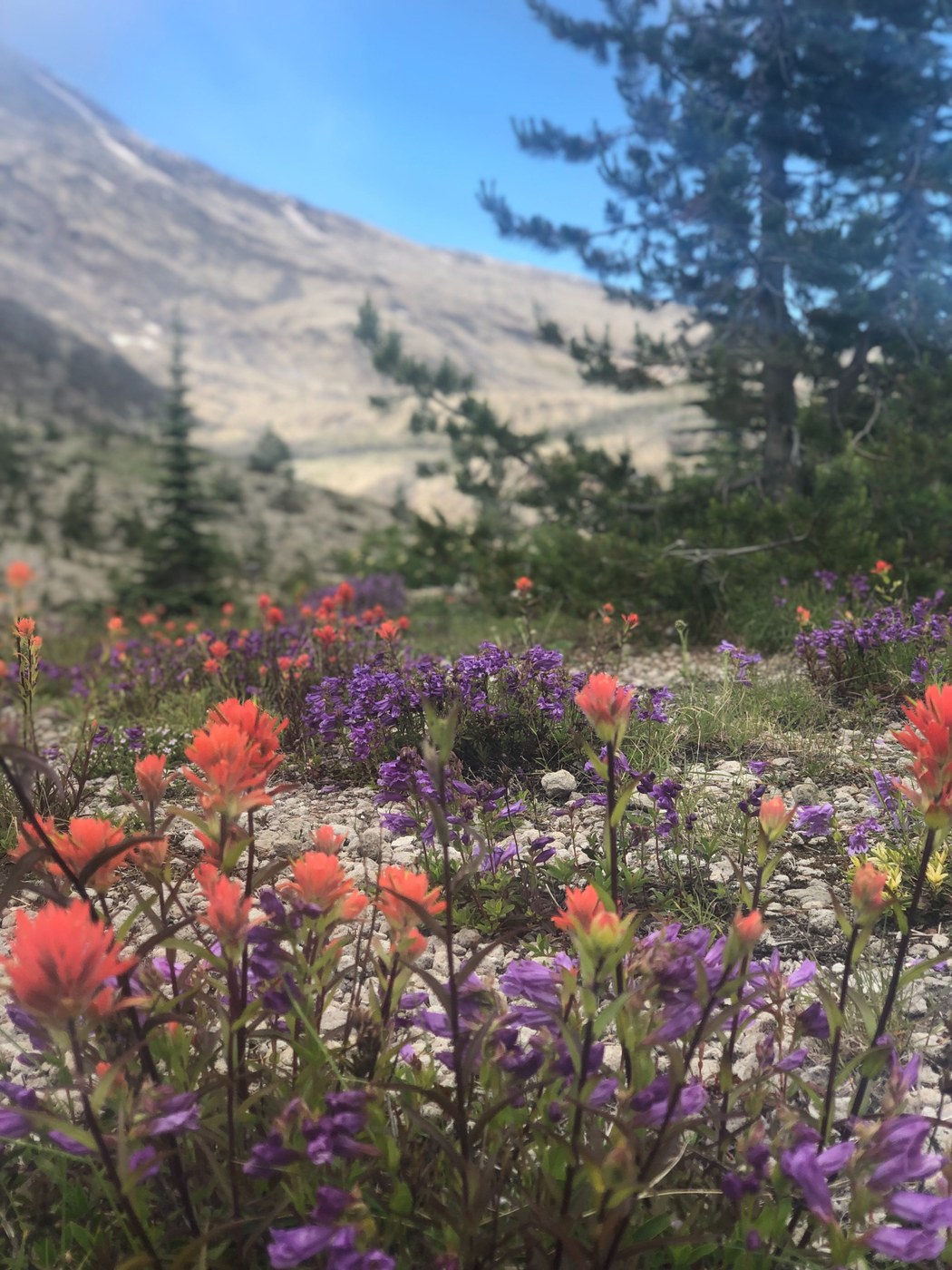 We lunched just below the Loowit Junction trailhead while we waited for the clouds to burn off the top of Mt. St. Helens. Alas it never fully did, so started our descent back down around 12:45. The walk down was still cool, but much sunnier...blue skies and a bit of sun peaking thru the tree canopy. Took us two hours back down with a lot more trial traffic. Passed hikers, dogs and mountain bikers...again everyone was super friendly.