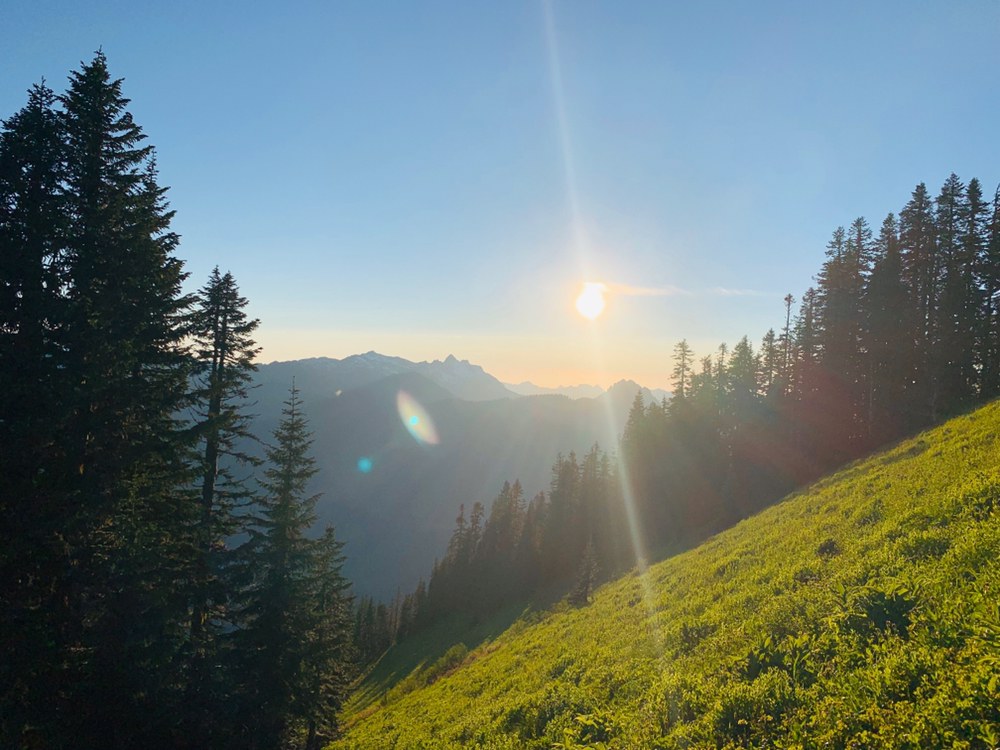 The hike: Brutal. 1000 feet of elevation gain per mile is no joke. From the trailhead, there is no relent until you reach the top. It is a narrow trail, not a logging road at any point. There is one small snowfield to cross before you reach the lookout. We came up for sunset and left the trailhead around 7:30. We only passed one individual on the way down. The views are phenomenal and make the leg burn worth it. The descent is quick. We headed down right after sunset and didn’t need our headlamps until the bottom.
