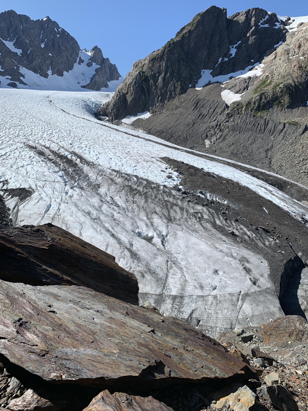 I only hiked to the terminal moraine because I was stressed about going up the washout and wanted to get going (though some of my friends did both but said the terminal is better than the lateral moraine). It was a really spectacular, if not a primordial experience as my friends guide book said it would be.