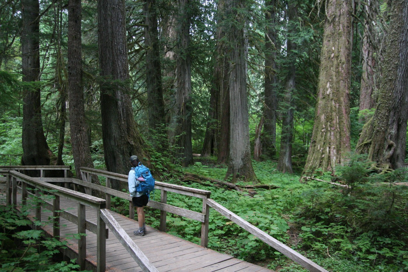 We hiked earlier in the day and after a siesta, and dinner in Packwood, we decided to head to the Grove of the Patriarchs. We don't usually hike that late in the day (it was around 7:pm) but hey we needed to make the most of our one day in the park (and the fee). So back in to the park we went. Frankly I didn't expect to enjoy it so much. Maybe it was the perfect temperature, maybe it was working off the big dinner we ate, or just the trail itself. Yes the trees are impressive, but the stream that runs through the grove really adds something. There were still families with kids hiking this trail when we were heading in but the parking lot had thinned out to just a few cars left when we finished.