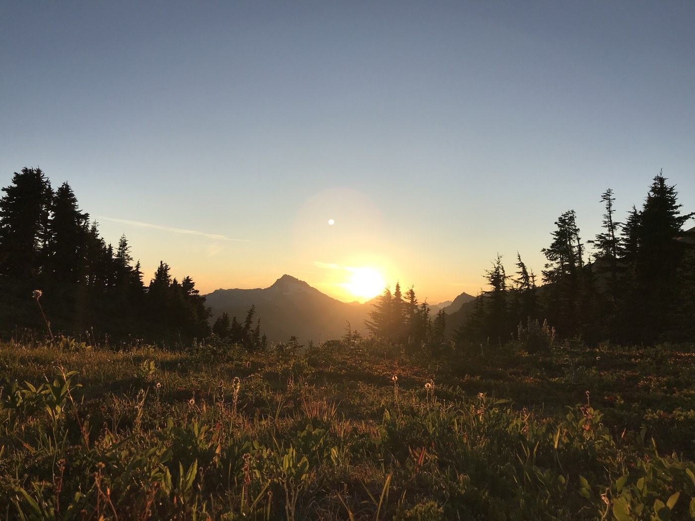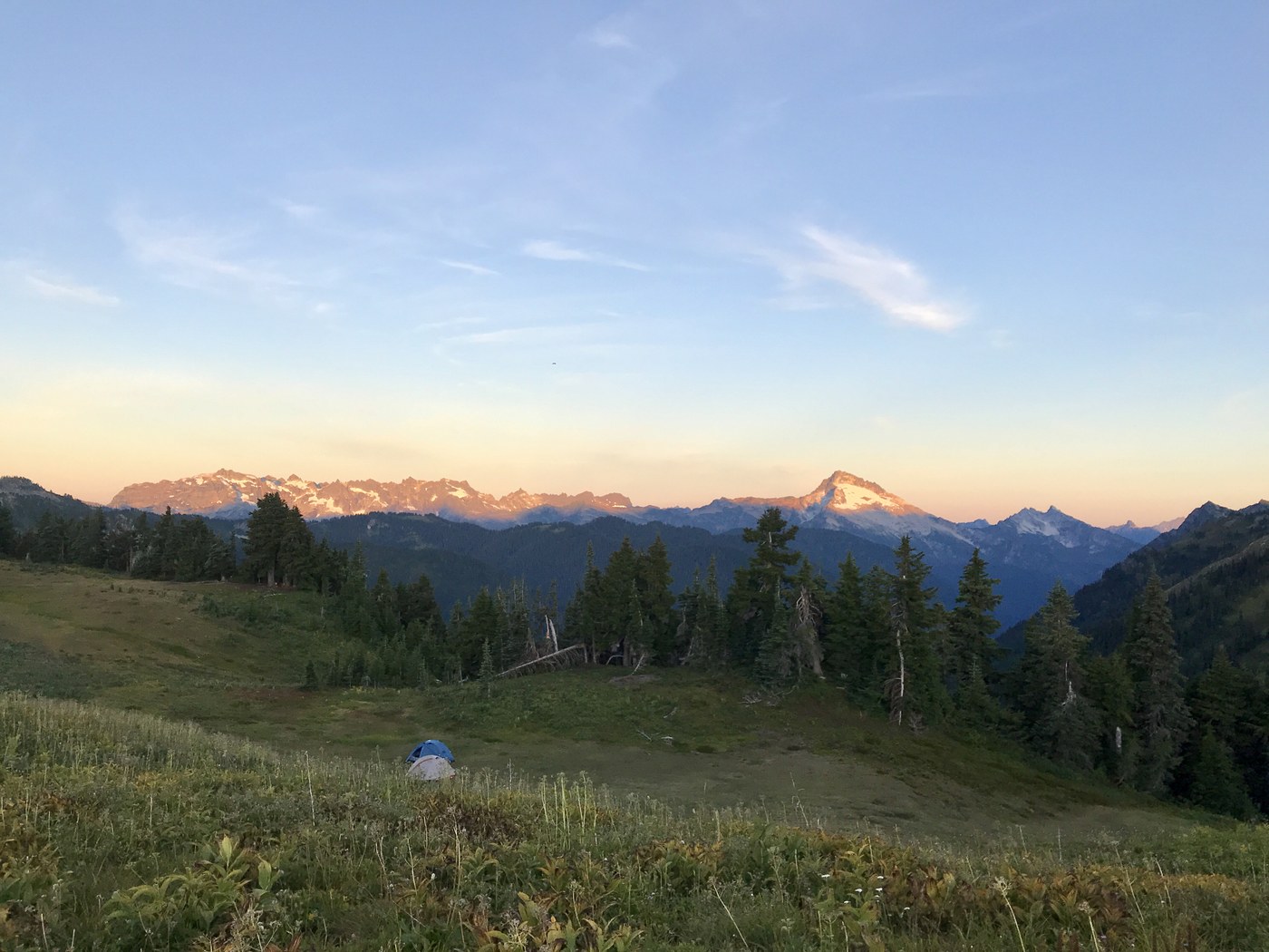 The first bit of the trail is pretty straightforward, hiking through the forest with the river right next to you. After about 5-6 miles, you'll pass a wooden structure by the river on your right, which is where you should fill up water as there is none between this point and White Pass. You'll start a pretty challenging climb, gaining 1000 ft elevation per mile for about 4 miles (half exposed and half in tree cover). Once the climb is done you start to traverse the mountain, walking through blueberries and meadows with peaks all around you. We camped at White Pass, and there were plenty of campsites to go around, and apparently a toilet (but I never saw it). The creek was pretty stagnant so we ended up having to backtrack onto the trail to find running water down a crevice in the mountain. The pass was an AMAZING place to watch the sunset/sunrise and do some marmot spotting.