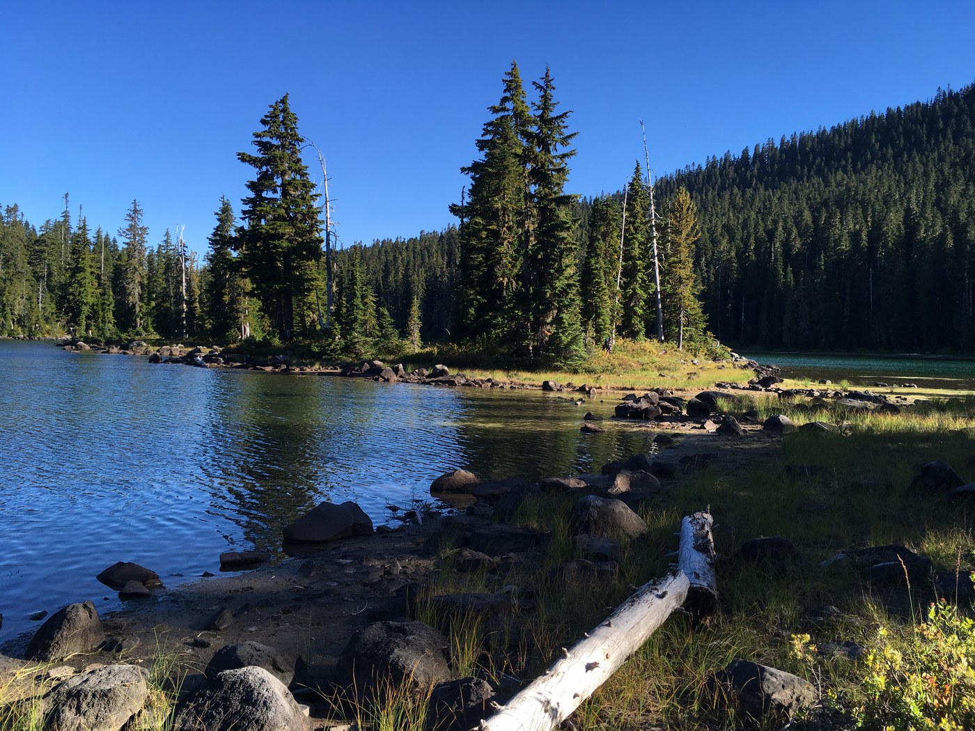 Dumbbell is the prettiest lake of the bunch I thought, with some pumice rocks lining it for jumping in for a swim. (Most of the lakes are rather marshy). There are lots of good camp spots with trees to hang a hammock, grassy meadows, lovely lake views. My dog and I took a 6 mile loop around some of the other lakes--Pipe, Long John, and lots of tarns. Main trails are marked, others aren't, so I was glad I had my map and Gaia. Soon the elk will be bugling.