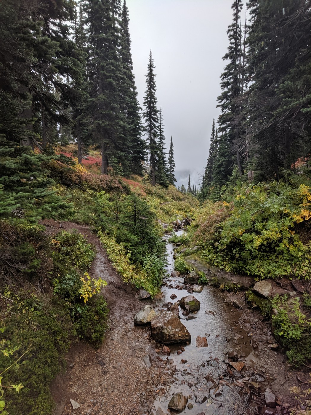 Trail is in good condition and fall colors are great in the mountain ash and huckleberry.