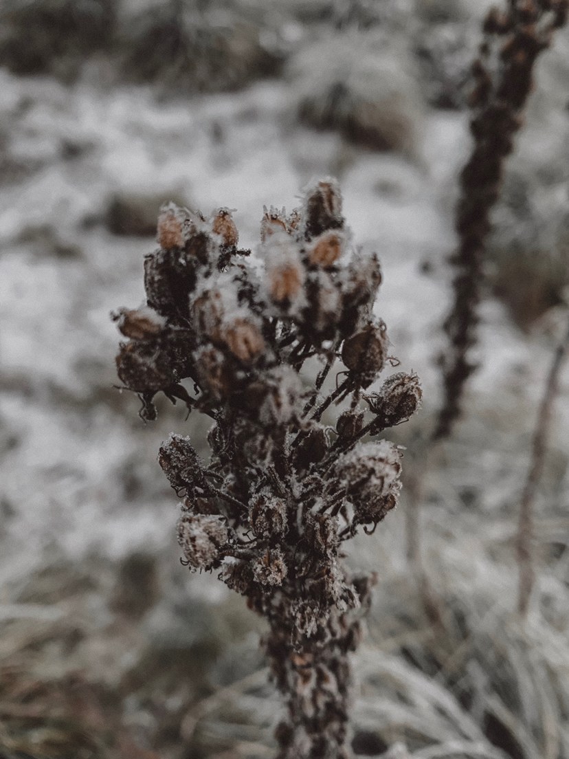 Lookout was occupied by rangers, and there were three cars camped up by the bathrooms overnight. Snow started falling at 7:12 AM. It was a beautiful sight, but the mountain remained hidden by the clouds until after we left. Beautiful hike!