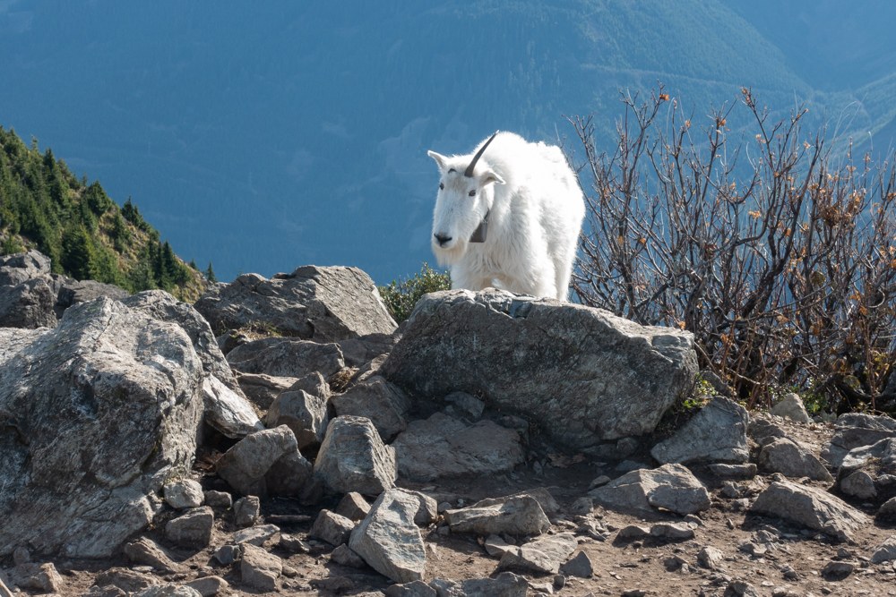Goats with a big radio collar are most likely ones relocated from the Olympics.