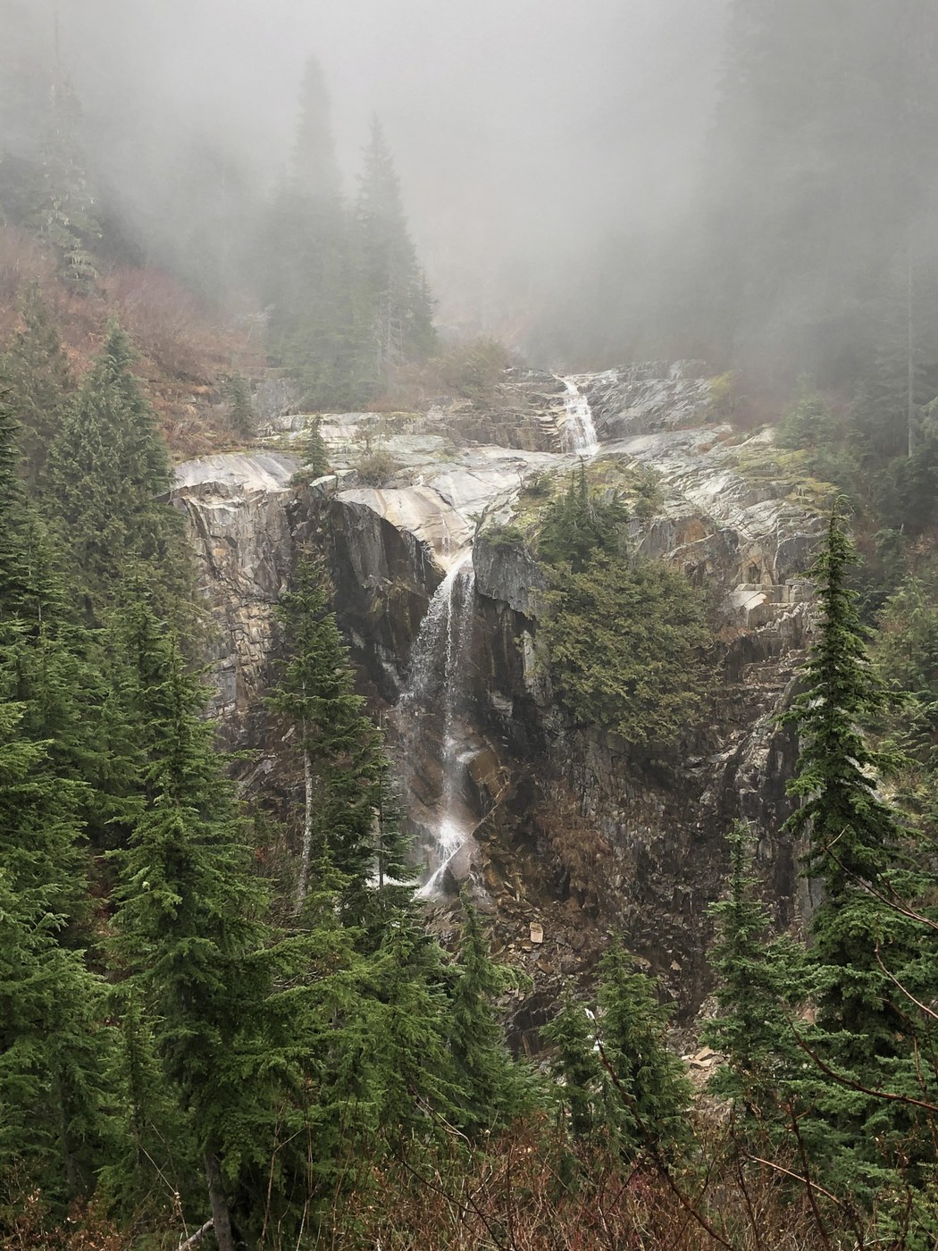 Overall, the hike was pleasant and relatively quiet (we saw only a few other hiking groups during the day). It was foggy (though the views of the waterfall were still spectacular) and rained off-and-on, making rain gear a "must." Once at the first lake, the short and easy rocky scramble along the shore to the left to the second lake (Upper Melakwa) was well-worth the effort.