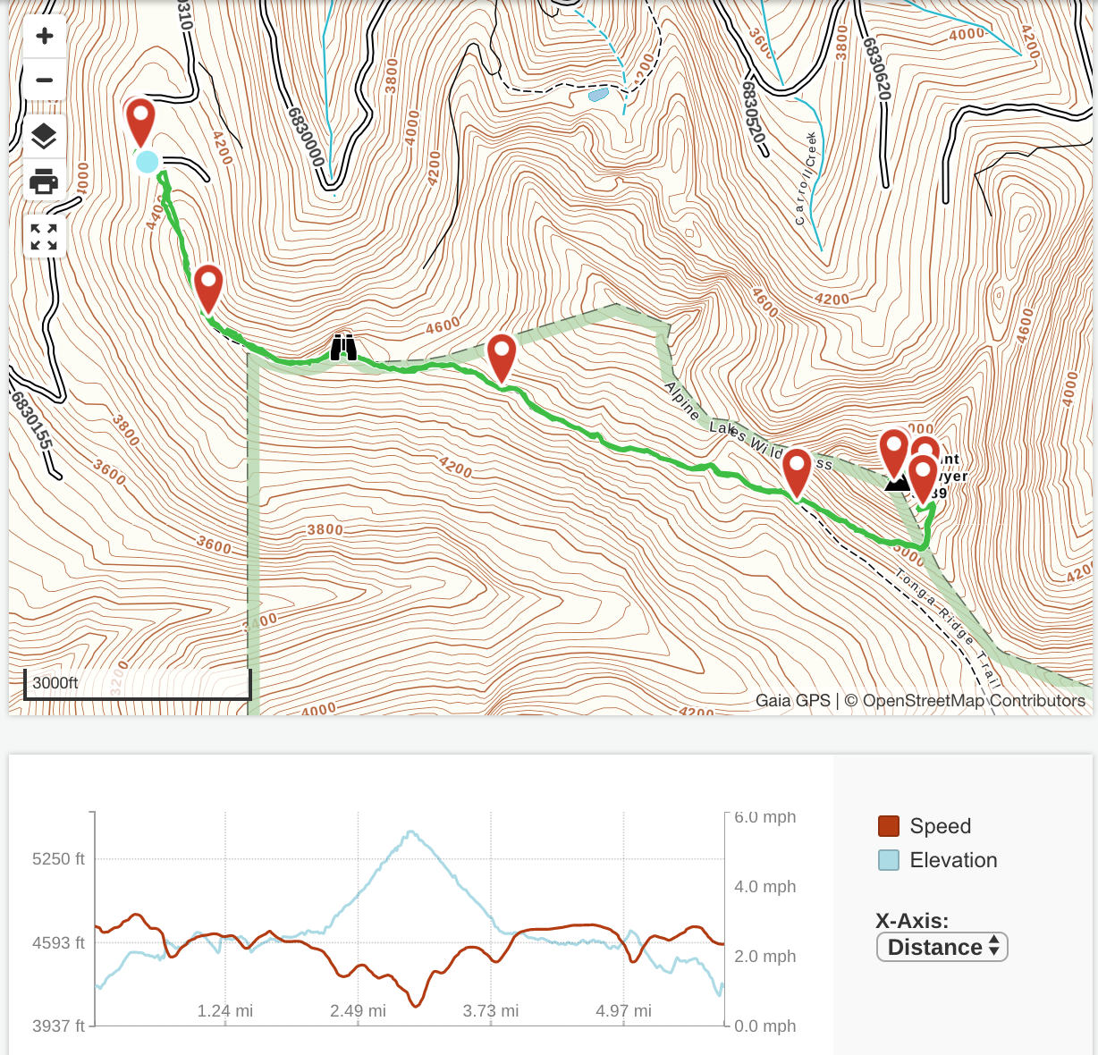 We had our lunch on the snow-free south-facing rocks near the summit, then had an uneventful trip back to the car. We had considered pushing on and checking out Fisher Lake, but time constraints meant we had to leave that for some other day.