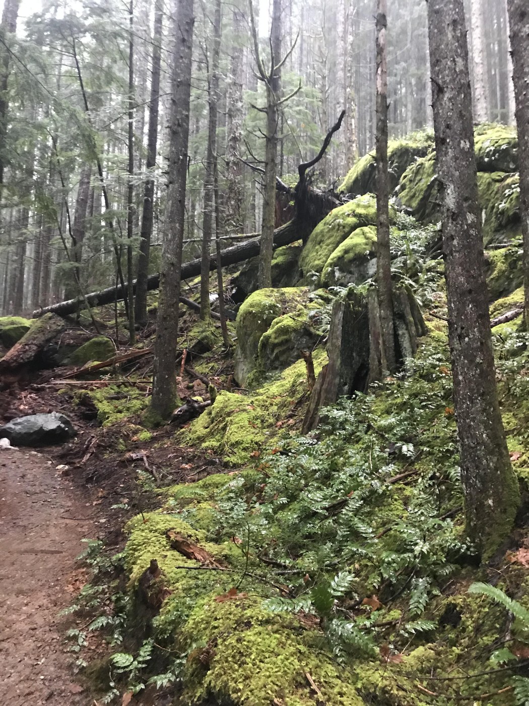 Great new trail with a great view. Left the parking lot at 9 arrived at the top at 9:30 and back to the truck at 10. Lots of rain but the trail was holding up good except for one section in the middle that was getting muddy with the water running down the center. a couple of water diversions would do the trick. The section was only about a 100 feet long or so and a little steep. Great big staircase towards the top and lots of rock walls on the way up to check out.This will be a great running trail I think if you don't want a long distance. The trailhead is after the bridge at the end of the Middle Fork of the Snoqualmie river road. They fixed the road going to the Lake Snoqualmie Trailhead Too ! Shaving a 1/2 mile off that hike returning it to the way it was a couple years ago. Hopefully it last this time. They put in a descent ditch and gave the water a good route so I can see that the water could be too high to cross at times but it should hold up. There was a descent amount of water crossing the Dingford Creek trailhead road so I turned around not wanting to see it higher on may way back. Great day to play in the rain and very happy with the work they have been doing out there! It would be great if they opened the gate to the hot springs and let us drive all the way to the old Dutch Miller Gap trailhead like when I was a kid. I think its a private road now I heard somewhere. The Trailhead is still there and in fair shape , at least it was last year. Maybe some day. I did not think they were going to fix the road to the Lake Snoqualmie Trailhead either but I"m sure they are going to need the parking.