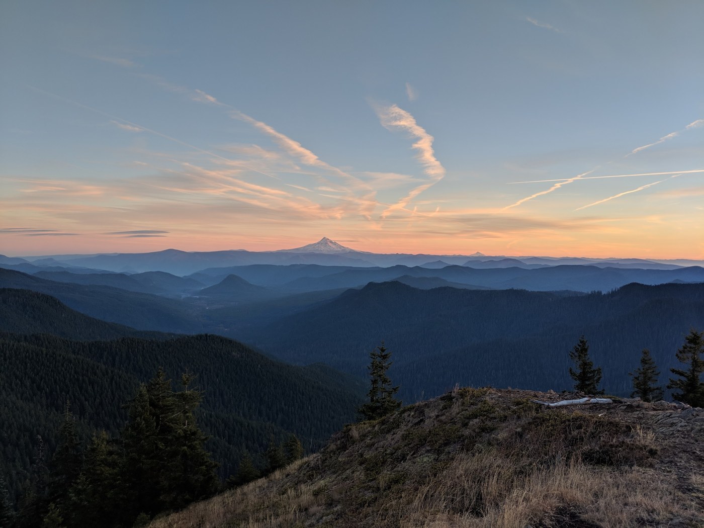 Went on an excellent fall backpacking trip to Observation Peak, forming a loop via Trapper Creek trail. No snow yet, even at 4200 ft, but the night was below freezing (mid 20s). We camped out on the summit, where there's a few nice ledges (but no water at all). Trail is in excellent shape, some decent fall color, and the creeks are running low (so no challenging crossings).