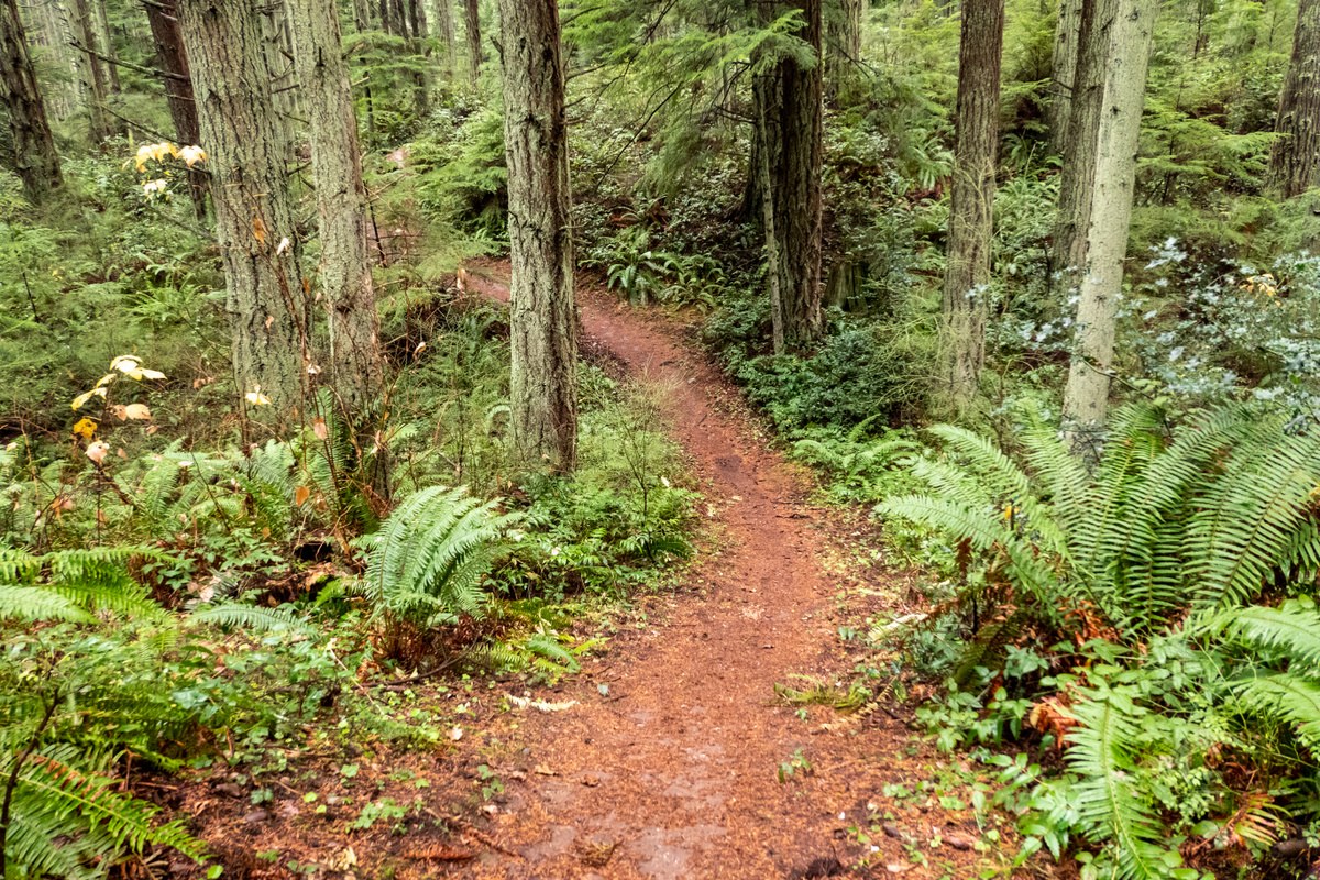Followed a counterclockwise loop around the park. While the main east-west connector was a wide, alder-lined trail, the side trails meandered through nice Douglas Fir (and Redcedar) forest.