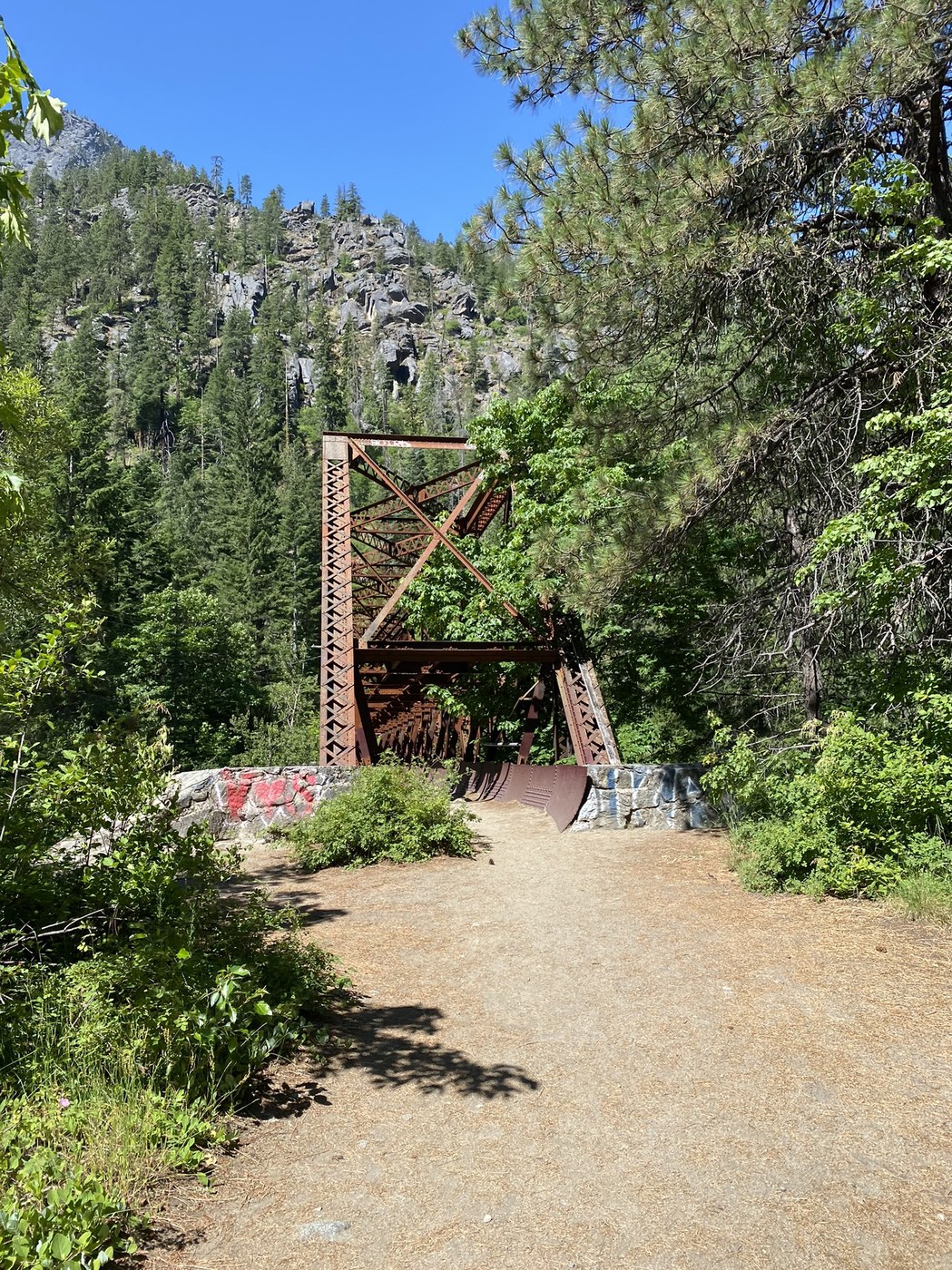 We did not understand that the creek we ran into about a quarter to half a mile in was passable. We looked all around for a place to cross & continue on the trail but couldn’t figure it out. Sad that we missed it. The river was beautiful though and there were tons of butterflies flitting about.