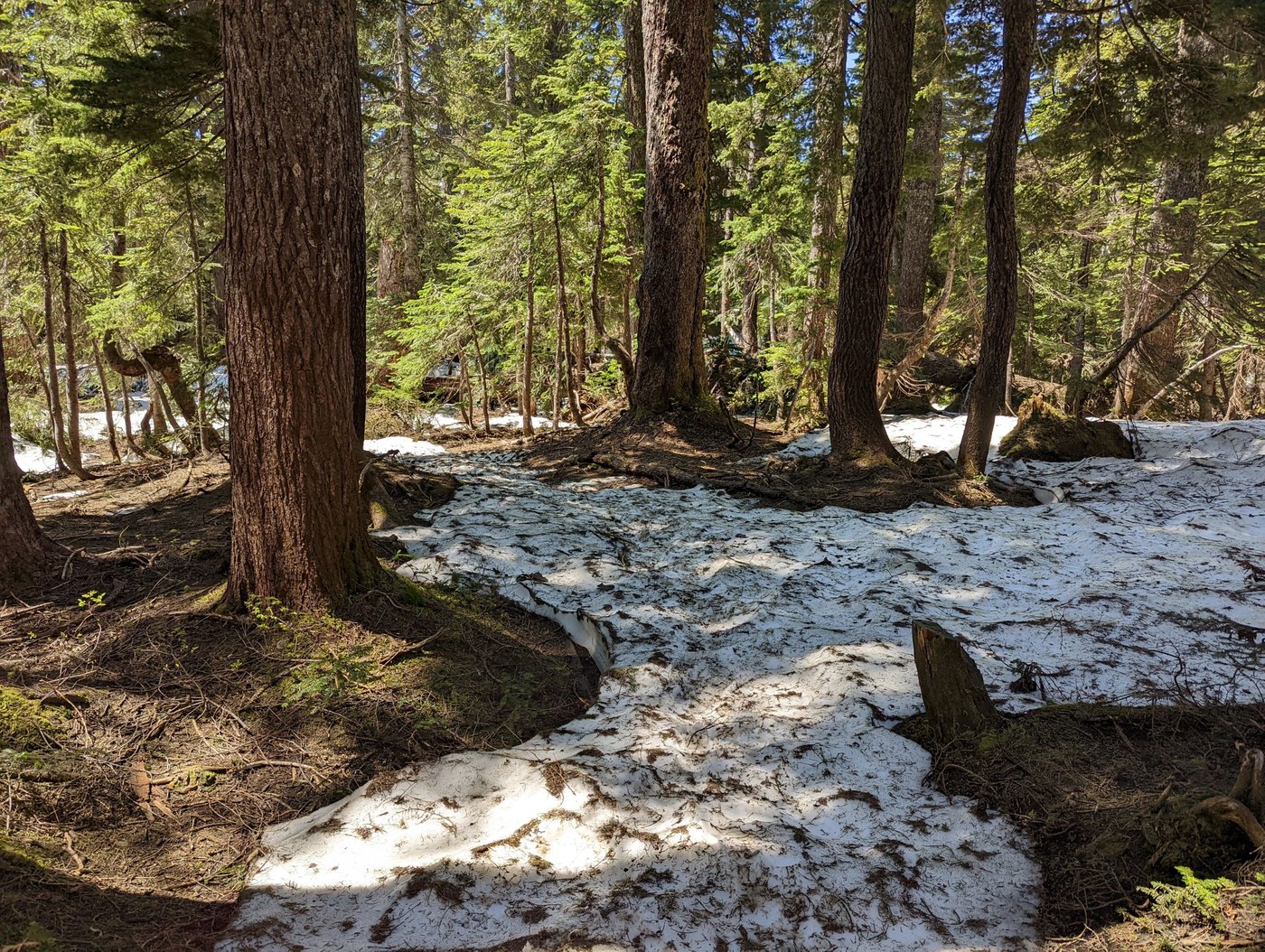 Summary: Road is full of potholes in places and we saw a VW Golf lose its oil due to hitting surface rocks. Other than that, the road is how the road always is. Hike was good. Lots of snow to cross. We didn't use poles or spikes and made it fine (51y dad, 17y daughter). The trail can be hard to find in the snow from time to time, so be aware of tracks as you cross. You'll encounter a few snow bridges; they were all stable for us. There is some water on the trail and some trail-swamps in places due to melt but nothing impassable. All in all a good hike.