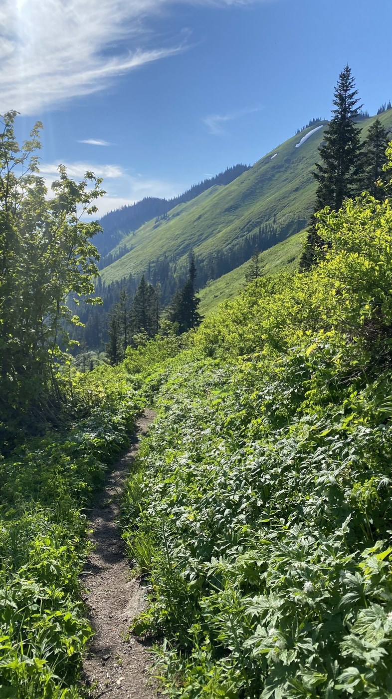 Gorgeous hike. In 2 weeks or so the wildflowers will be incredible. We hit snow around 5000 ft, about 3 miles in. It was soft. Not sure if it was just a patch or if it kept going, it was late in the evening and a thunderstorm was rolling in, so we headed back. The road is a bit rough and narrow, a landslide left several large boulders in the road and a washed out area, but it’s doable with high clearance. We did this hike as the Suiattle River Trail (and the forest road past Downey Creek) is closed due to last year’s fire.