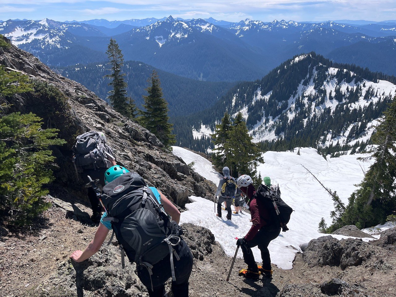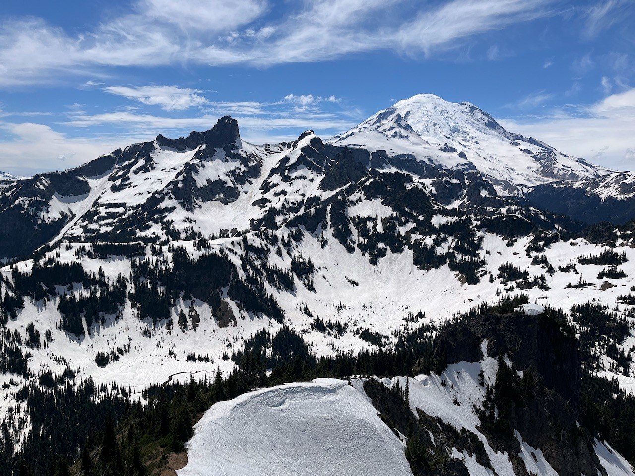 This was a Tacoma Mountaineers scramble. Due to late snowpack this season, conditions were ideal to summit 3 peaks in one day on the MRNP 100 Peaks list. Weather was sunny and mild.