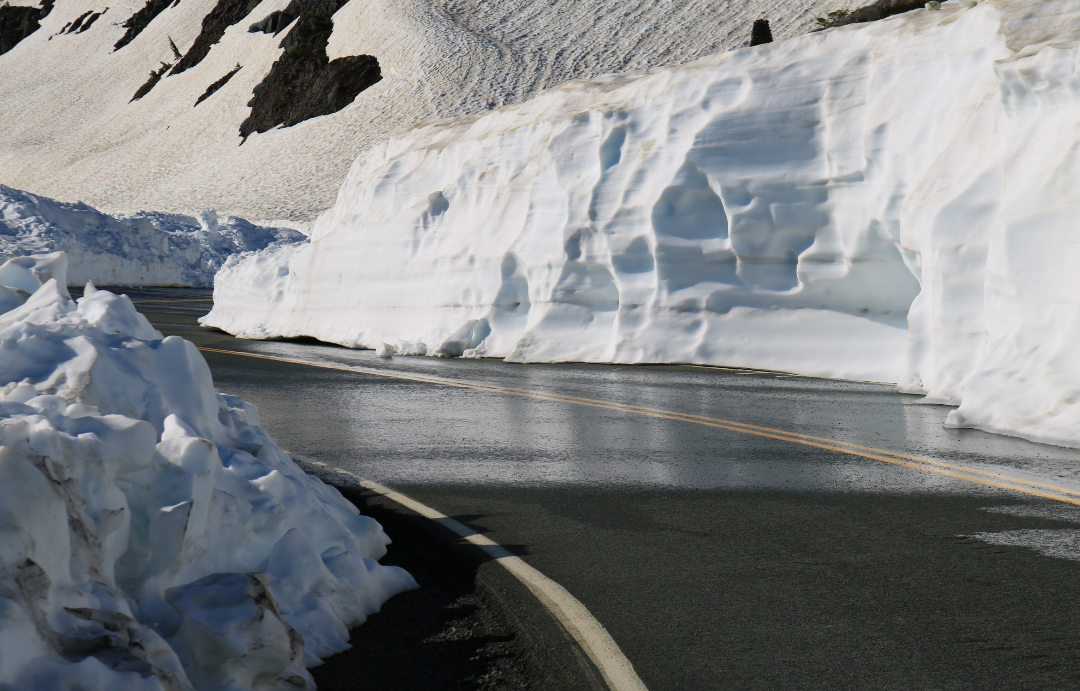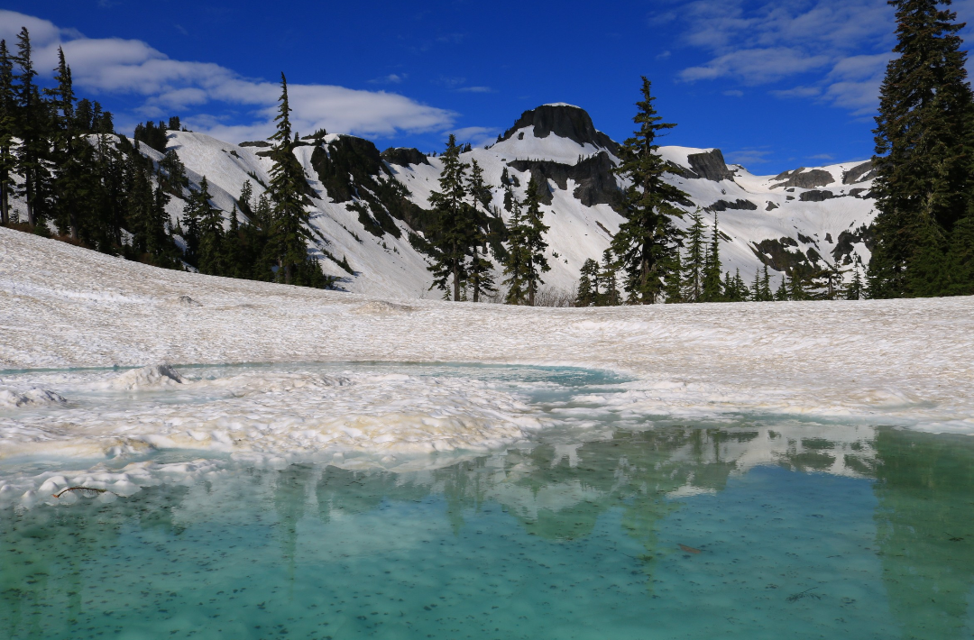 The road is open all the way to Heather Meadows visitor center, where I parked. Passing the gate and heading up the road I expected to encounter snow at some point, but the road is 100% clear all the way to the Artist Point parking area. There were 2 snow removal vehicles working, which I made sure to give a wide berth on my way through. After the parking lot it is snow anywhere you want to go, so be prepared for that. The snow is probably still 15 feet deep.