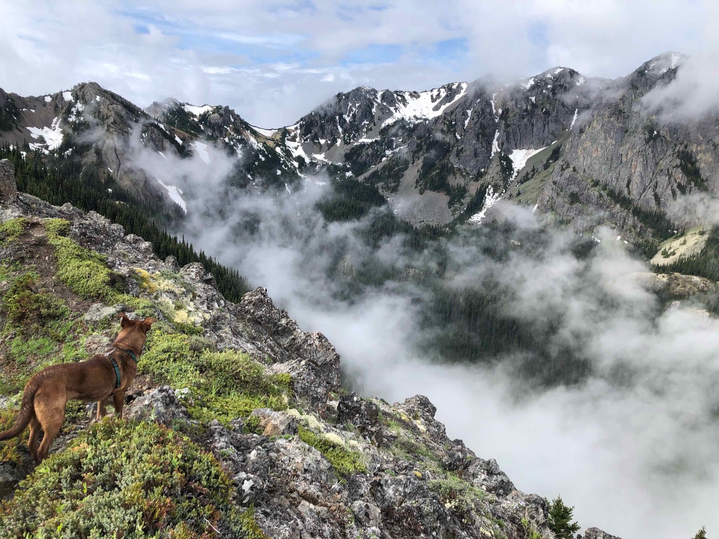 Being the explorer that my captain is, we took a detour along the cloud cover ridge too Welch’s Peak, turning around at a Class 4 scramble due to a lack of gear, and a trained climbing assistant. Come on! We were short roping the whole time!