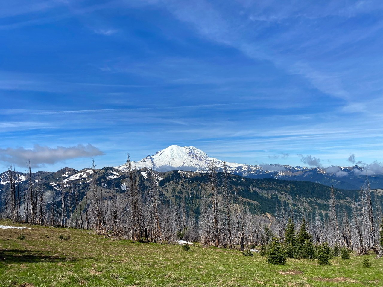 Arrived at the parking area along Crystal Mountain Blvd about 8:30am on Sunday. There were a few vehicles parked, but plenty of space for more. We hiked up to Norse Peak, getting there at about 10:45am. Very few people on the trail. The snow is minimal at the top - will probably be melted out after this week. Beautiful views of Rainier, Adams, Stuart, and even Hood. We sat at the top until about 11:30am, and were back at the trailhead before 1:30pm. There were more vehicles in the afternoon, but still plenty of space along the road for parking.