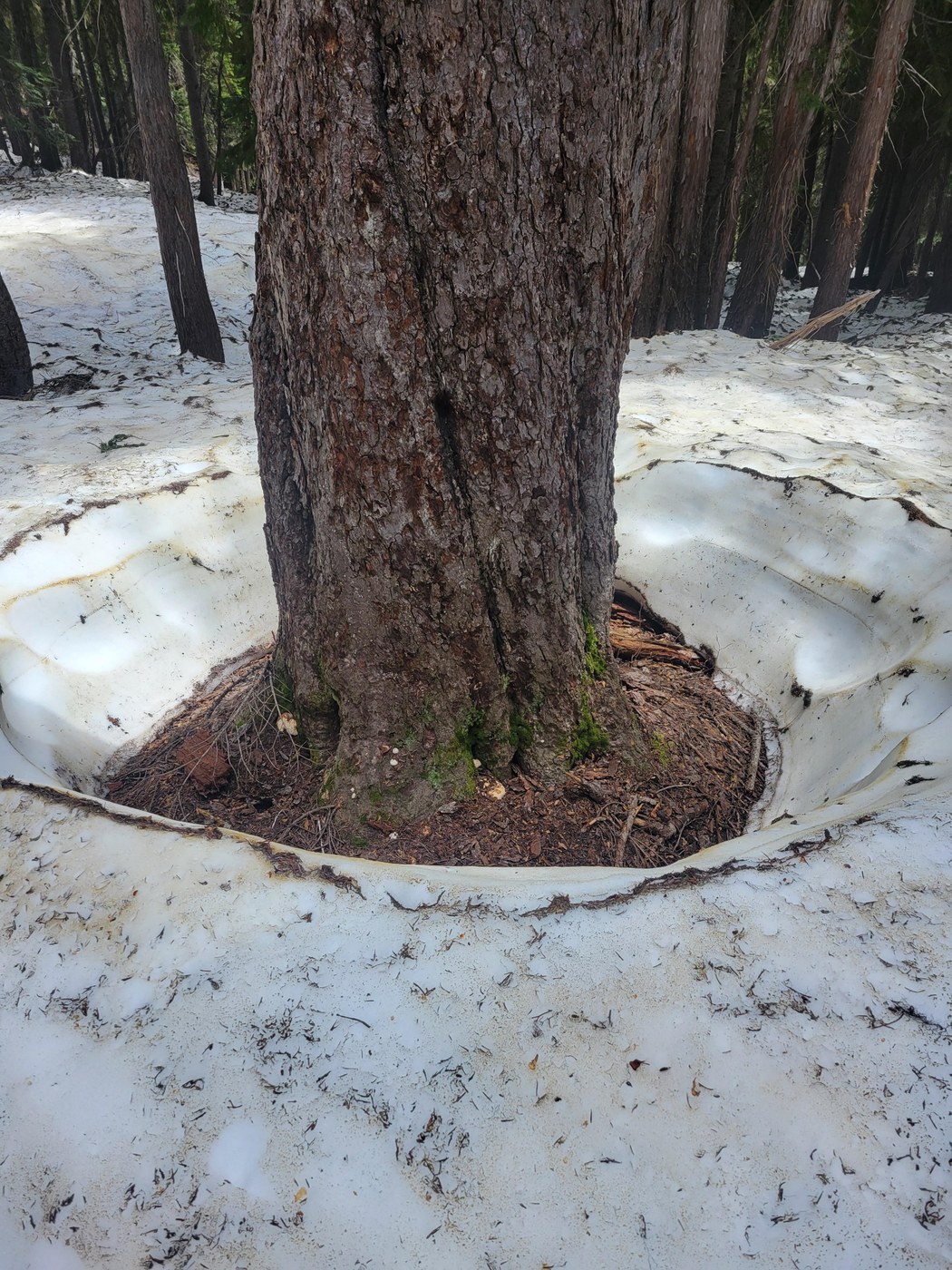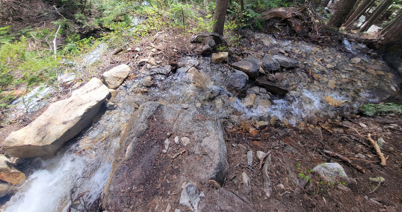 Road is in good condition, no potholes, but does have slight washboarding. Creek is flowing over the road in 2 parts, about 20 inches deep. Stick to the left of both water crossings in the road with your vehicle and you can make it through the shallower parts. High clearance recommended because of these crossings, though there was 1 sedan at the trailhead. Trail has many downed logs but are easy enough to go over or under. Many water crossings on the trail, only a couple are a few inches deep and rushing water, could be dangerous if you don't have sure footing. Past Squaw Lake, the rest of the trail is snowpack. My party had trouble finding the trail in several places and considered turning around. With some persistence, we studiously looked for footprints in the snow, and found patches of trail showing through when we lost the footprints. Between looking for the trail and actually trudging through the snow, the last 1.5 miles to Cathedral Rock took us 90 minutes. (We did the first 2.5 miles, snow-free, in 90 minutes.) Eventually we got to a point where the footprint trail was easy to follow, so the way from there was clear, but slow going across snow fields. We stopped at a rock outcropping on the right hand side along the way to take photos; after that we made it within a 1/2 mile of cathedral rock and decided we were tired and weren't sure if we could get above the trees for better views anyway (new to this trail and we're not climbers), so we turned around. Highlights included 3 frogs along the trail, and hearing a chorus of frogs along the way! Please remember your Northwest Forest Pass; Discover Pass is no good here. 3 vehicles had tickets when we returned to the trailhead.