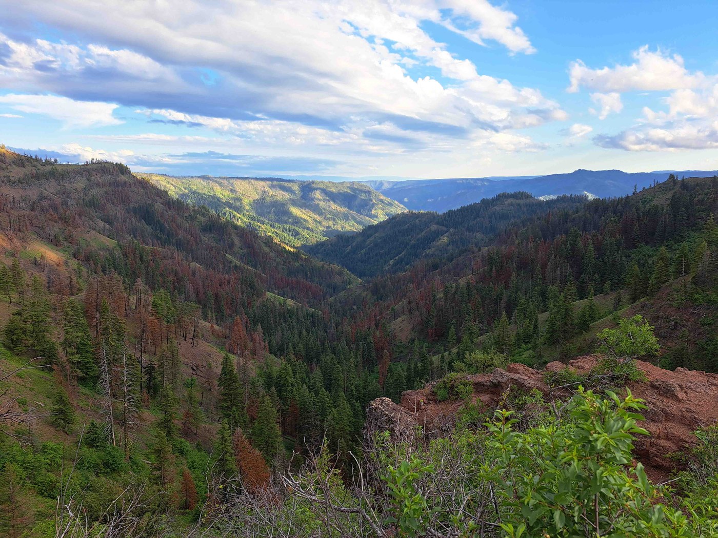 We started at the Panjab trailhead, which was easily accessible from any vehicle. On the first day we hiked the Turkey Creek trail to the TeePee trailhead. There were a few creek crossings but nothing major. We spotted a few morels along the trail, and a couple bear's heads too (my personal favorite). There was one campsite along the creek, but I suspect all the others were washed out. The TeePee campsite was fantastic though, with a toilet, picnic benches, a spring, and a great view! The spring was a little bit hard to find, especially without GPS, but it's directly down the gully below the firepit behind the bathroom. You'll know it when you find it though, there's a hose and a trough.