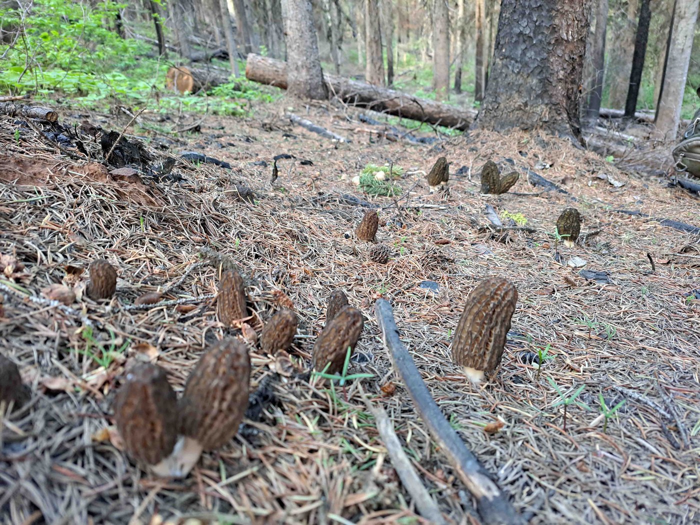 We had lunch at Squaw Spring then went back to camp and spent a little while hanging by the creek and hunting morels which were littering the forest floor. For almost the entire hike anytime we were in a pine forest if we stopped walking we would certainly find a morel, but most of them were old. We found a spot full of prime morels though, and easily cut our fill. The fourth day we took the Panjab trail back to the car. After the first day almost all of the hiking was on exposed ridges and through burned forest, so good sun protection is a must! On the first day and the last day, down by the creeks, there was undergrowth which occasionally included stinging nettles (the Danger Point trail had some too) and a few muddy/boggy spots. The Panjab trail had a few decent washouts which I'm guessing would be easier to navigate going up than going down. The Grizzly Bear Ridge and Crooked Creek Trail no longer exist for what it's worth.