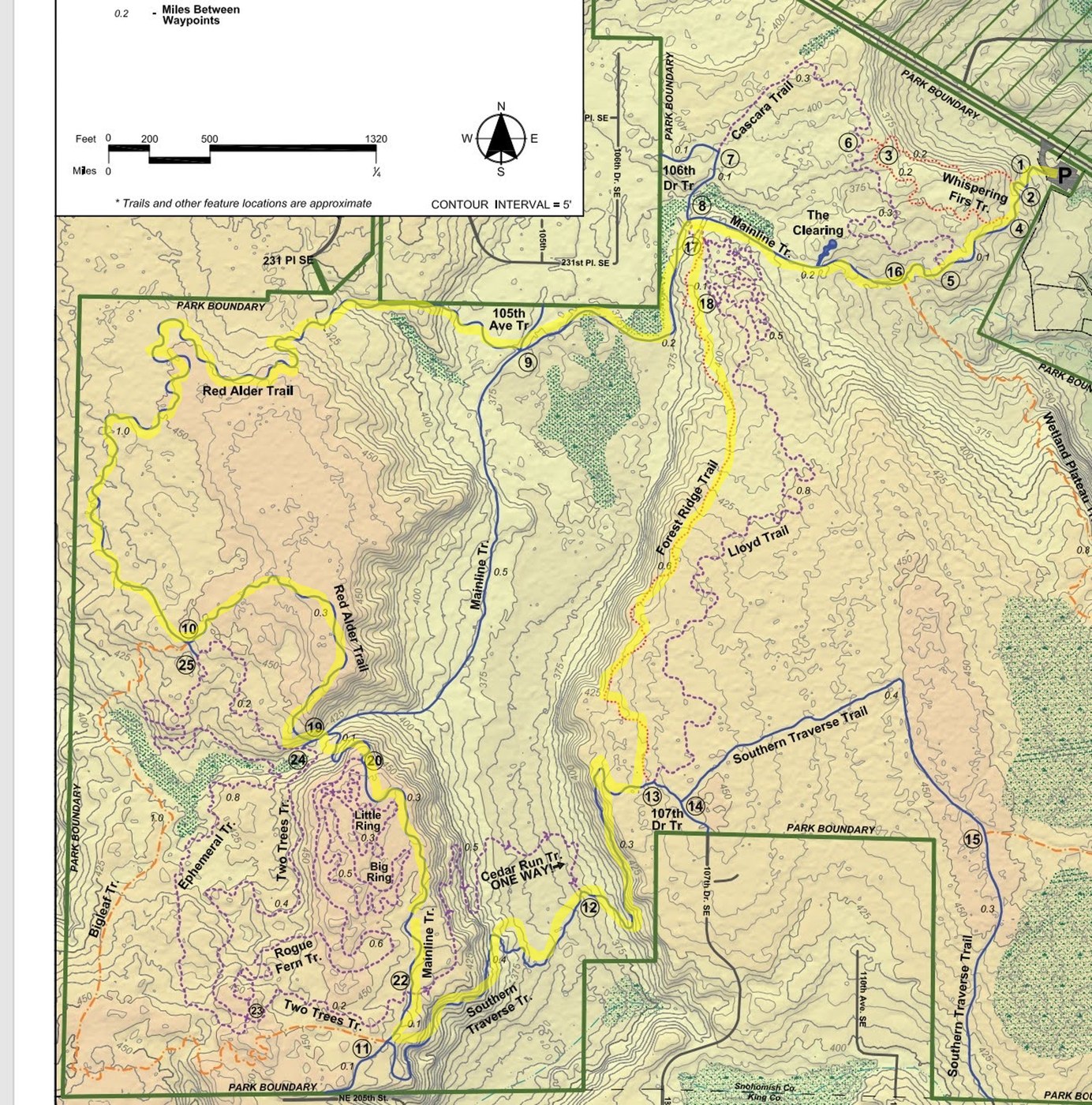 - Waypoint 13: Take "Forest Ridge Trail"