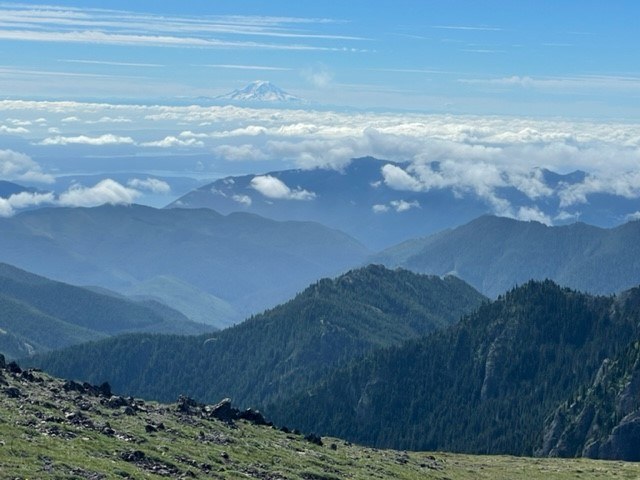 Got to Upper Mt. Townsend trailhead by 8:30 am after a 3-hour drive from Bellevue. A long-paved forest service road to get here. Some rough sections with potholes but not hard to get around with my old 4-runner. Still have some parking spaces left but they filled up fast. The outhouse was closed and I saw several areas with toilet papers by the lower trail. Yuk!