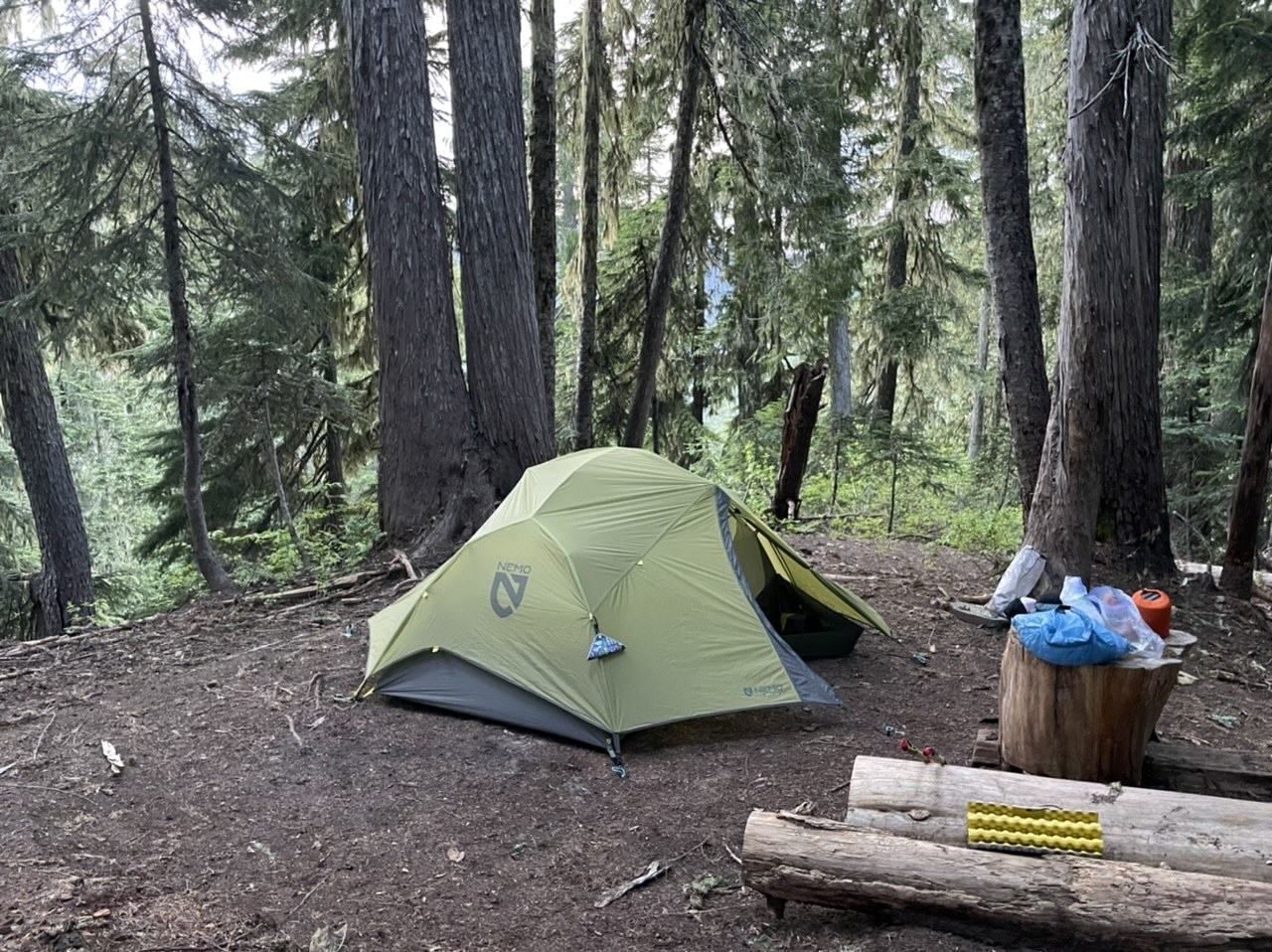 Camp has a couple snow patches on trail that are almost gone and campsites are clear with bear pole and toilet in. Highly recommend this trail/backpack if you have already seen some of the mountain and are looking for something a little less crowded and pretty chill/easy.
