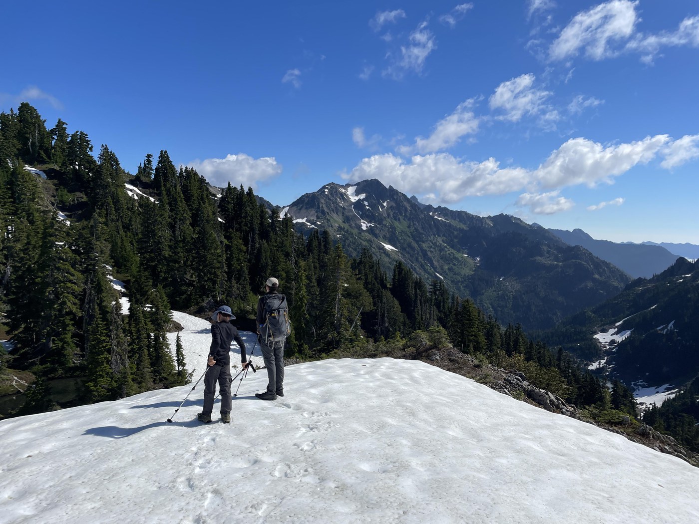 The trail up to the divide is in great shape. One small patch of snow, but felt sturdy.