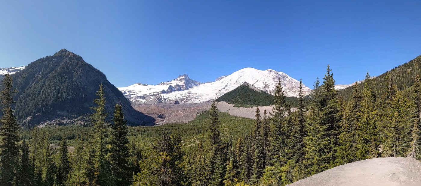 This was our first time doing Glacier Basin and it didn't disappoint! It doesn't have the in-your-face views of Mount Rainier that you'll get on hikes like Panorama Point and Fremont Lookout but it has fewer crowds and a steady diet of views between the trees for the first couple miles. The trail is quite wide and smooth for most of the hike and not very steep until the end. Near the top the trail gets steeper but is still quite nice, with some small pockets of wildflowers and fewer trees to block your view. We went ~0.5 mile past the end of the "end of maintained trail" sign and got some nice views of the valley facing away from the mountain, though the view of Rainier was mostly blocked by a ridge in between. Continuing up further didn't seem like it would change things much, so we decided to eat lunch and turn around.